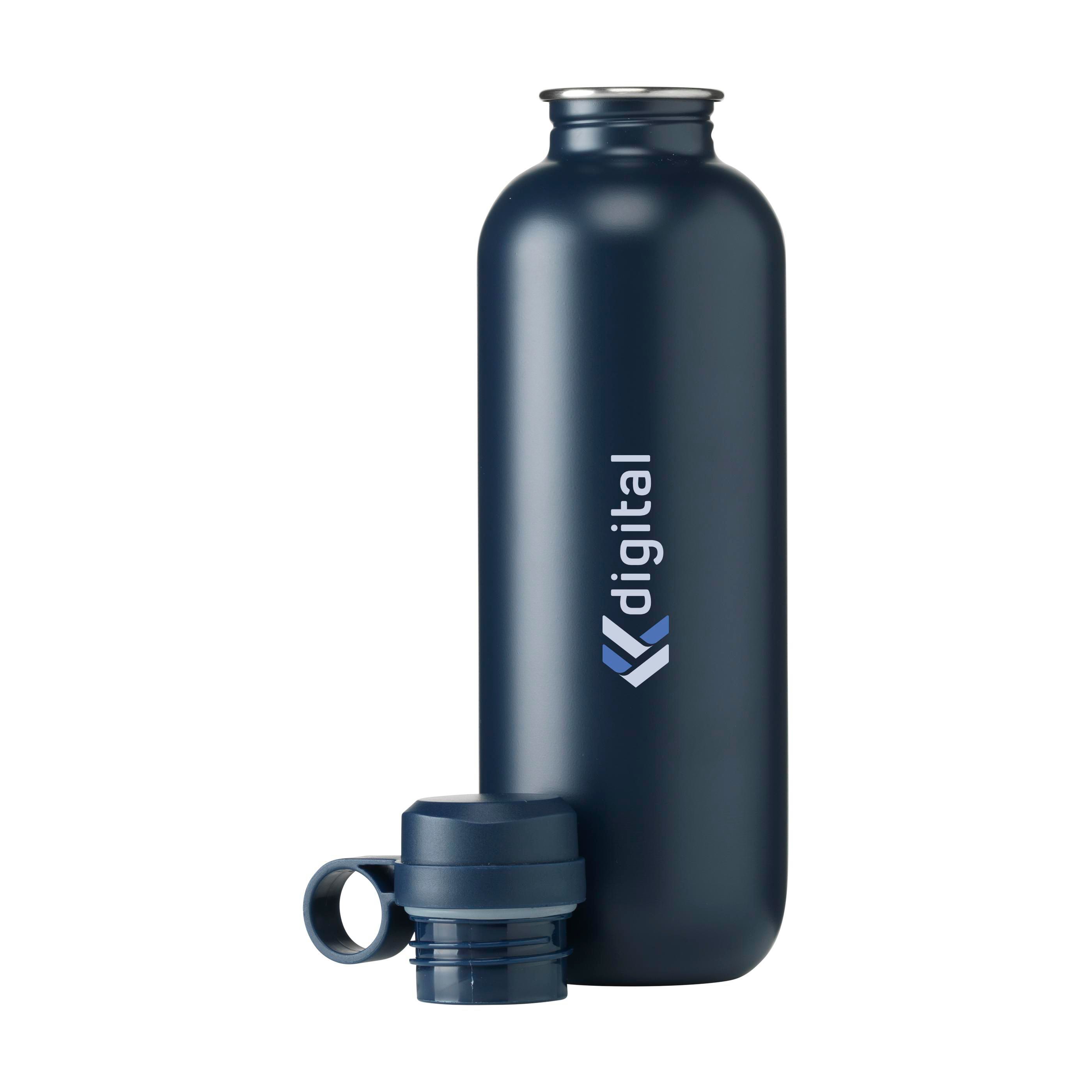 Einwandige, auslaufsichere Wasserflasche aus recyceltem Edelstahl. Schön verarbeitet mit einer matten Beschichtung. Mit auslaufsicherem Kunststoff-Schraubverschluss und runder Trageschlaufe als auffälligem Detail. Für kalte Getränke geeignet. RCS-zertifiziert. Gesamtes recyceltes Material: 73%. Fassungsvermögen 750 ml. Edelstahl kann viele Male recycelt werden – die Qualität des Materials bleibt dabei weitgehend erhalten. Durch die Verwendung von recyceltem Edelstahl kommt eine geringere Menge an neuen Rohstoffen zum Einsatz. Das bedeutet weniger Energieverbrauch und weniger Wasserverbrauch.