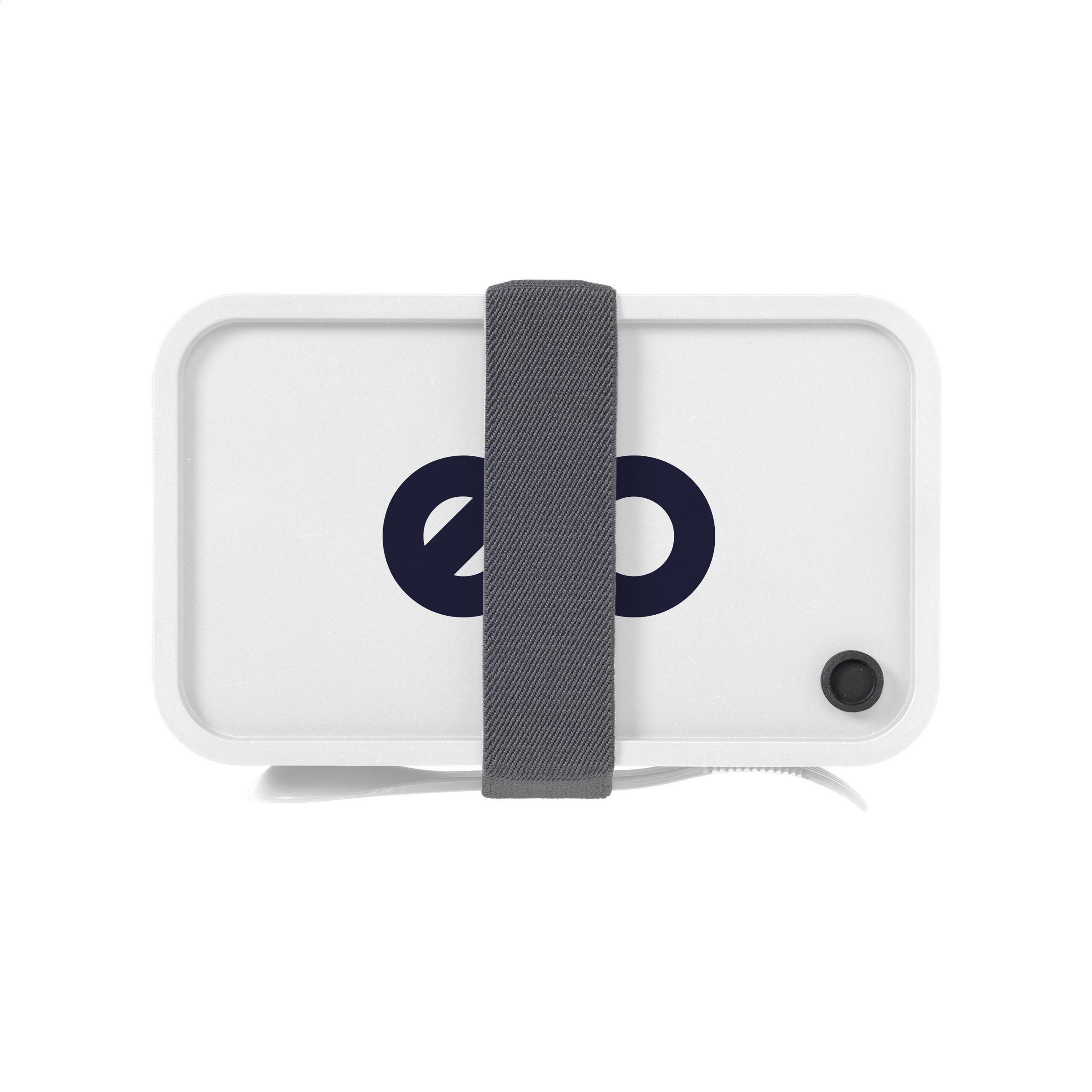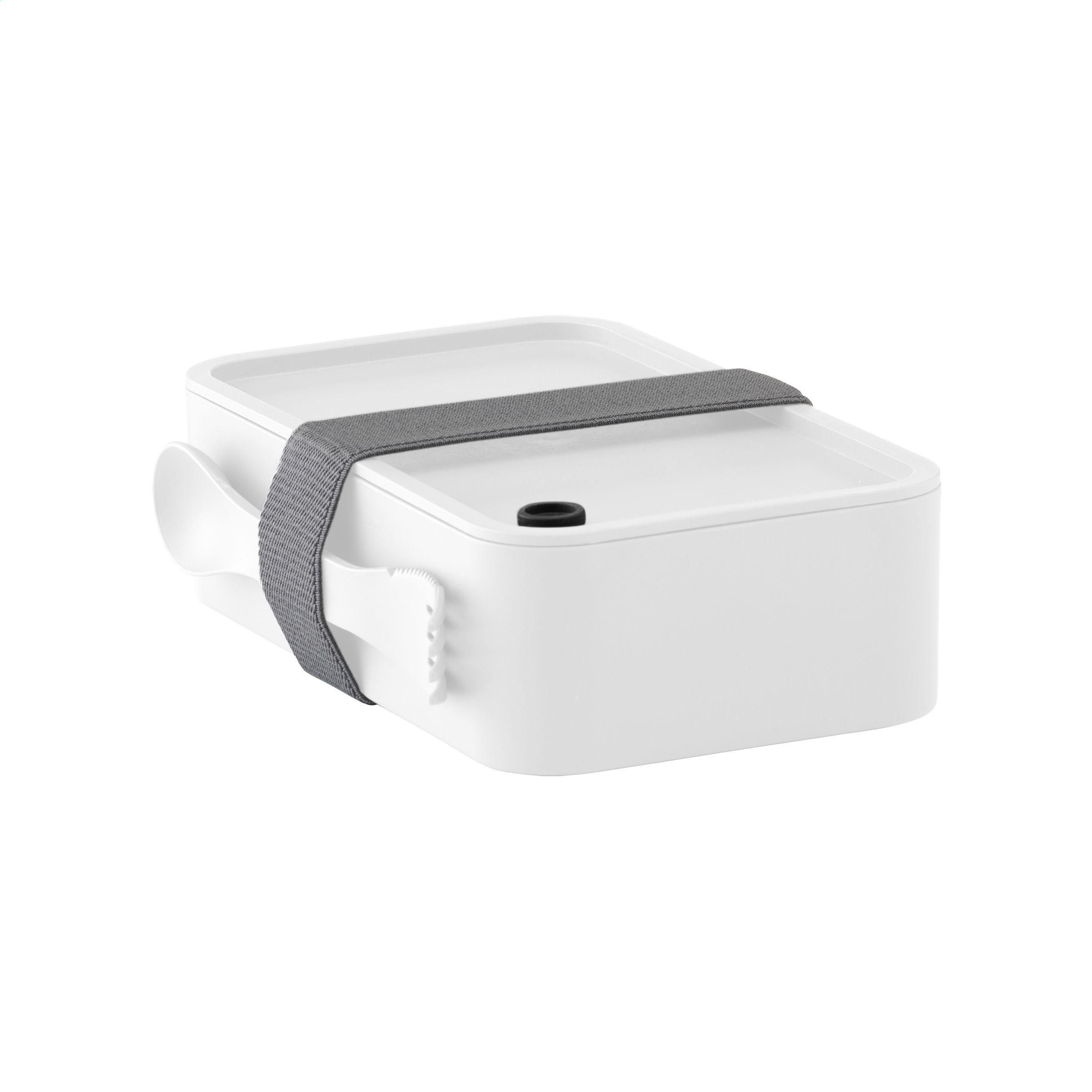 Lunchbox aus PP-Kunststoff. Der perfekt schließende Deckel hat einen Silikondichtring und eine Belüftungsöffnung mit Silikonkappe. Inklusive 3-in-1-Gabel, -Löffel und -Messer. Mit herausnehmbarer Trennwand und Verschlussgummi. Diese Box kann in den Kühlschrank gestellt werden und ist somit auch als luftdichte Frischhaltebox verwendbar. Geeignet für den Einsatz in der Mikrowelle und im Gefrierschrank. Nicht spülmaschinengeeignet.