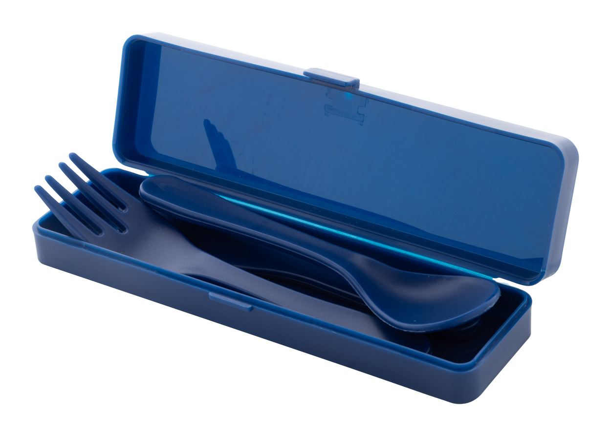 3-teiliges Besteckset aus PP-Kunststoff in einem farblich abgestimmten Etui. Beinhaltet Gabel, Messer und Löffel.