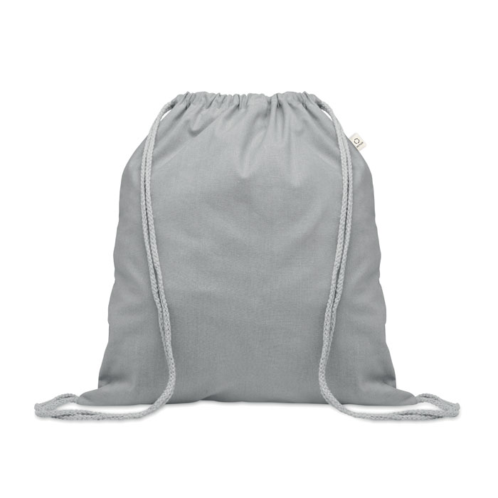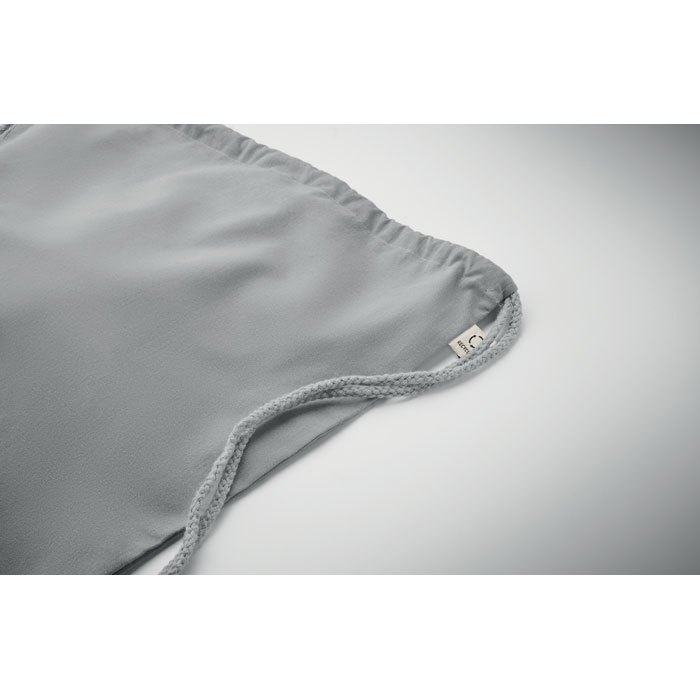 Beutel mit Kordelzug aus recycelter Pre-Consumer-Baumwolle (70 %) und RPET (30 %). 140 g / m². Artikel kann nach dem Bedrucken schrumpfen.