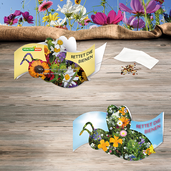 Ihr idealer Botschafter und Unterstützer als Futter für die Bienen Ausdruckstarkes, sympathisches, flaches Klappkärtchen, das sich für portofreundliche Mailings und Übergabeaktionen eignet. Das eingeklebte Samentütchen enthält eine bienenfreundliche Sommerblumensamenmischung.