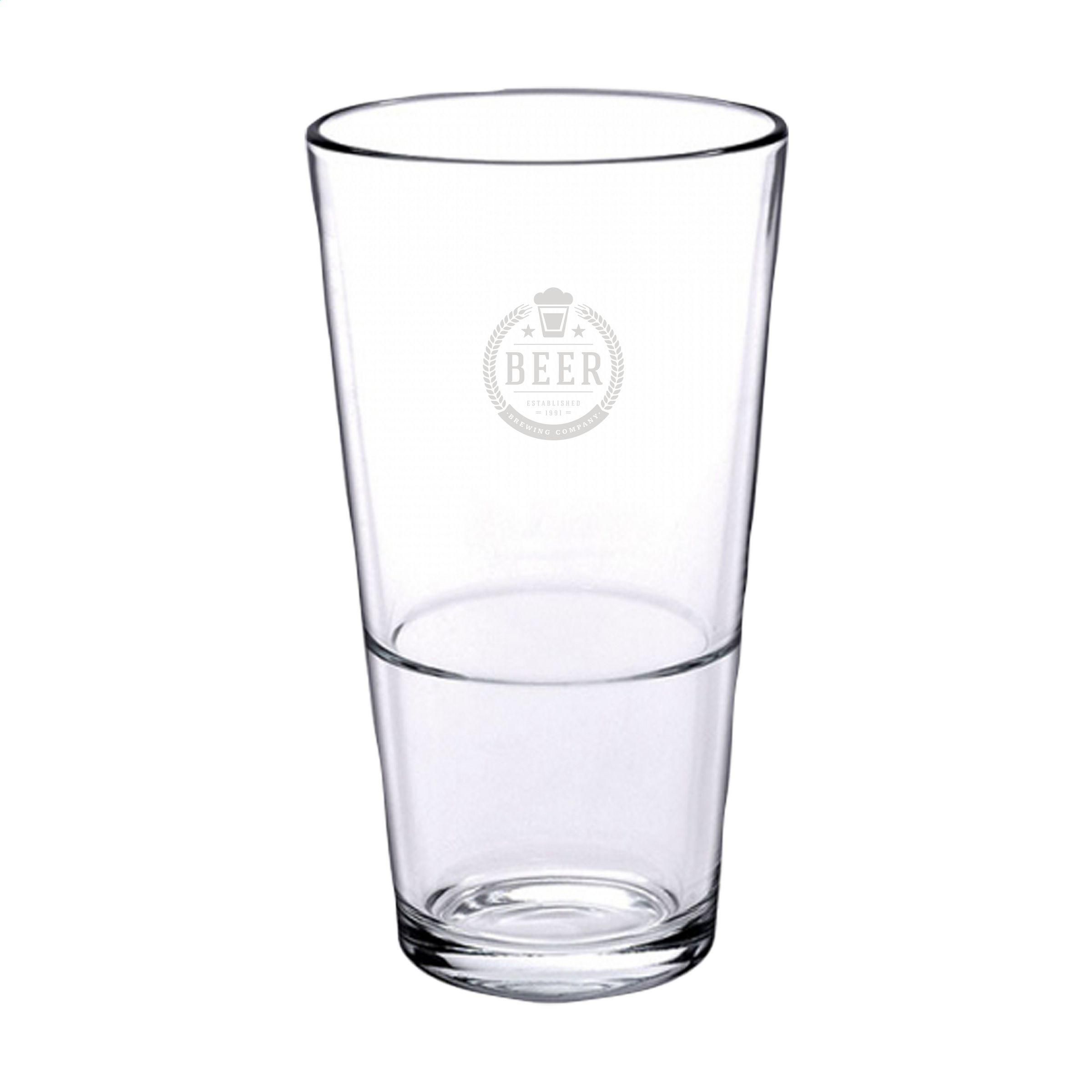 Bierglas in einem handlichen Format. Ausgestattet mit einer praktischen Stapelkante. Fassungsvermögen 340 ml Hergestellt in Europa.