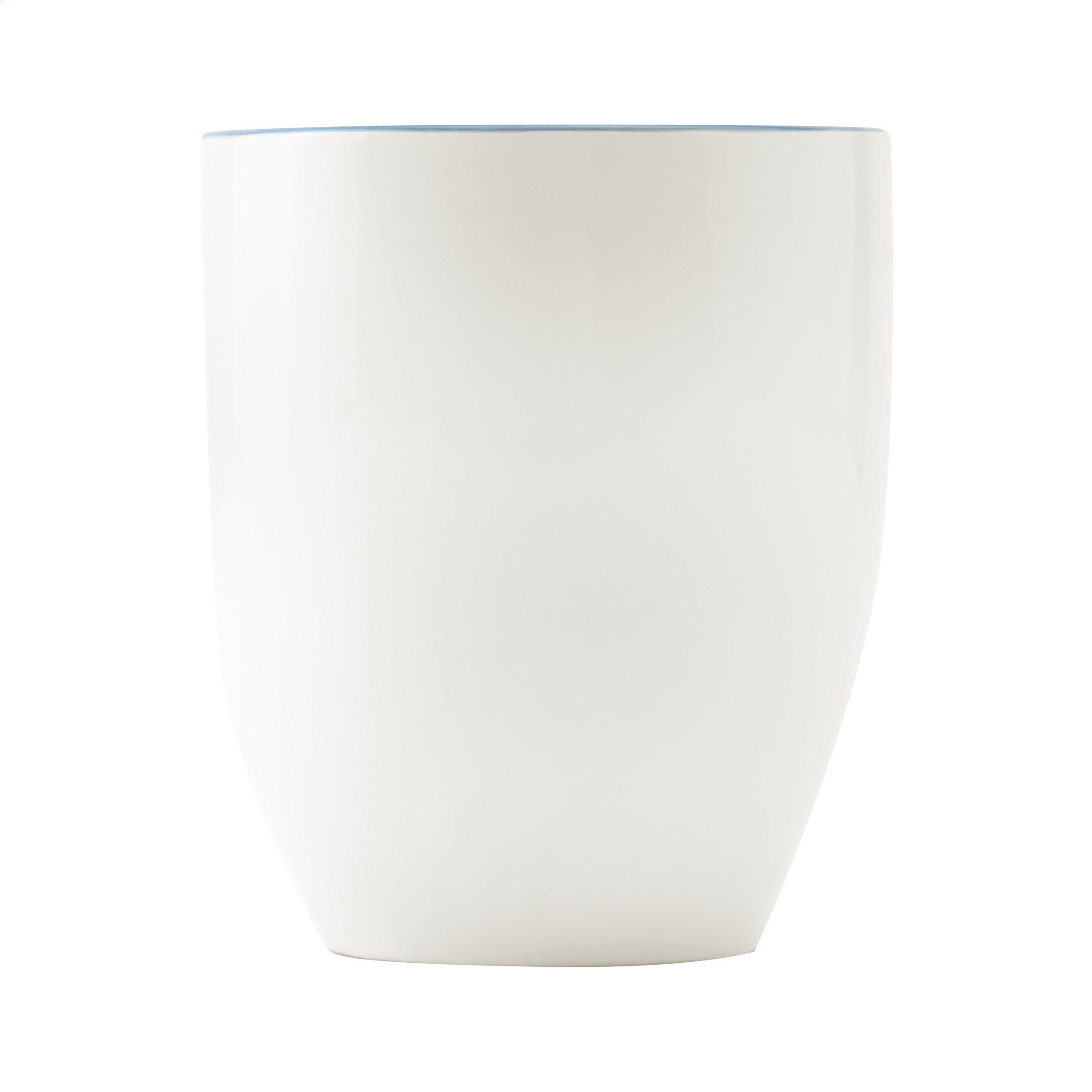 Extragroßer Becher aus hochwertiger Keramik. Komplett in weiß oder mit auffallender, farbiger Innenseite. Fassungsvermögen 450 ml. Spülmaschinengeeignet. Der Aufdruck ist spülmaschinengeprüft und nach EN 12875-2 zertifiziert.