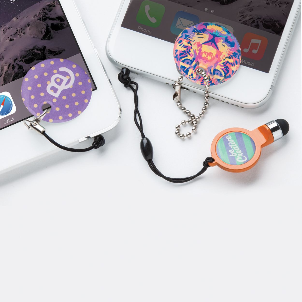 Runder Bildschirmreiniger mit 3,5 mm Stecker (zum Befestigen) mit individuellem Design mittels Doming-Druck. Mindestbestellmenge: 100 Stk.