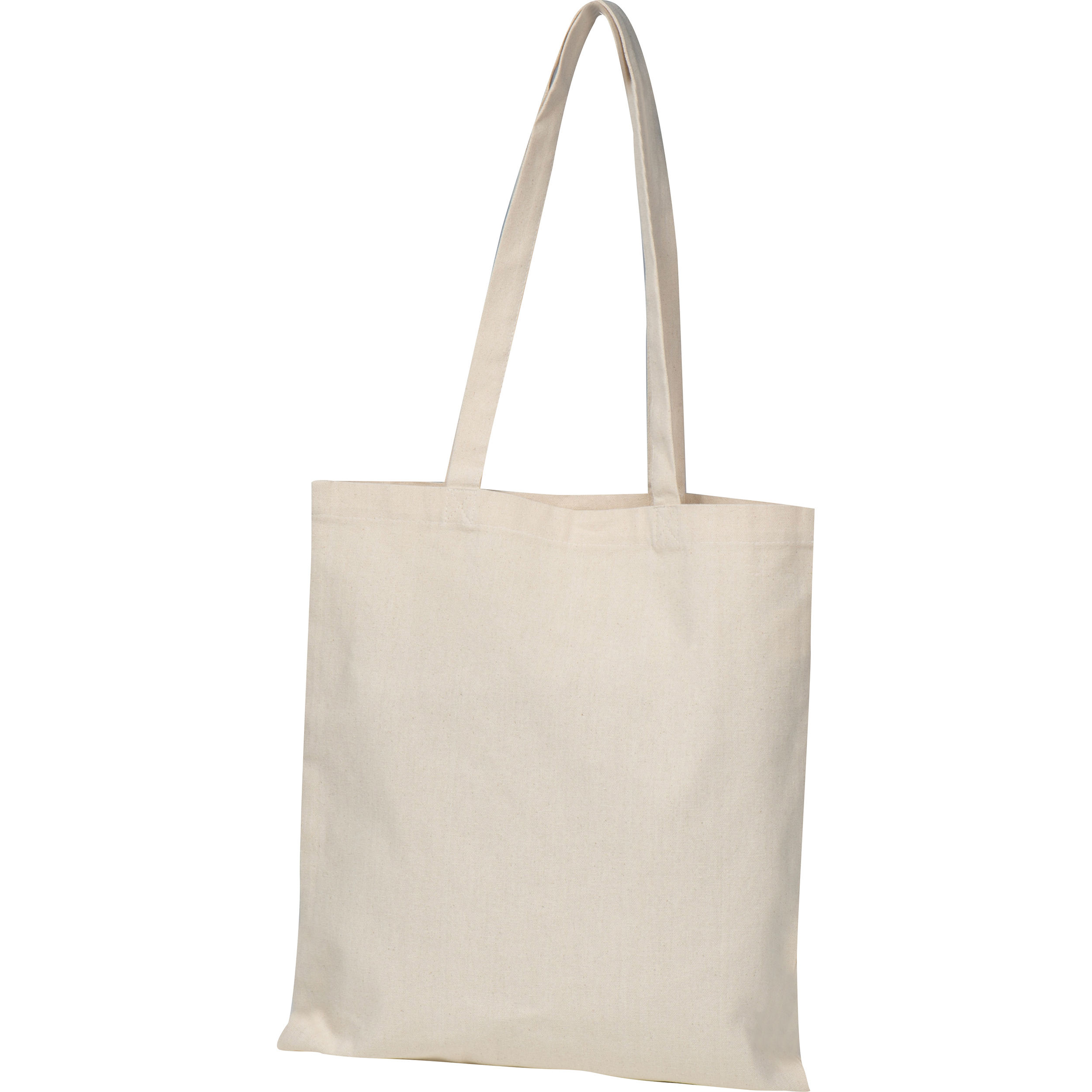 Bio Baumwolltasche mit zwei langen Tragehenkeln und hochwertiger Baumwollqualität (220g / m²). Ihre Werbung wird auf eine Seite gedruckt.