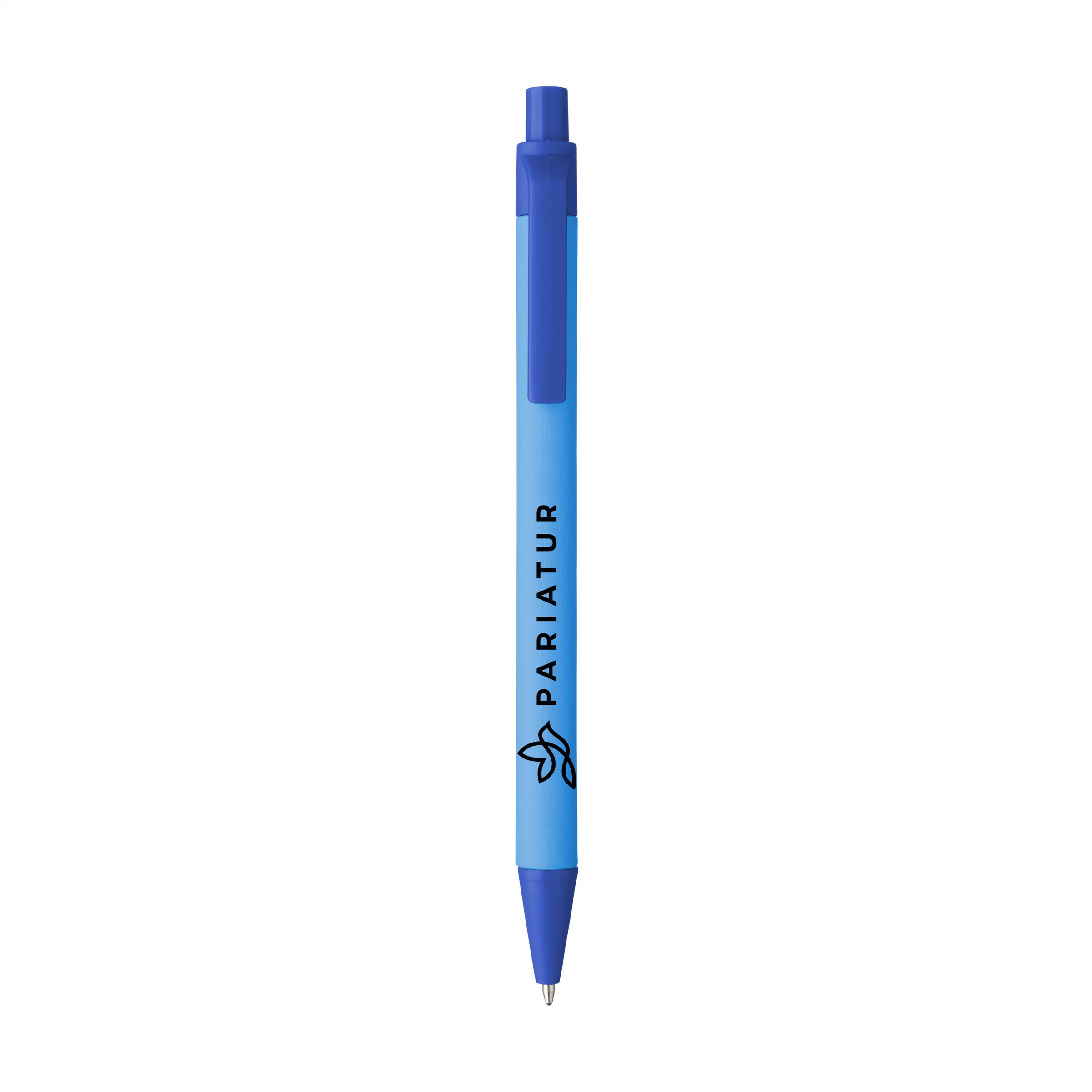Beschreibung: WoW! Kugelschreiber mit Halter aus Recyclingpapier. Der Clip, der Druckknopf und die Spitze bestehen aus biologisch abbaubarem PLA. Mit blauer Tinte.