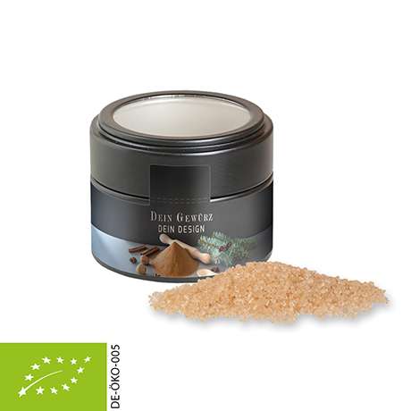 Metalldose Mini mit Sichtfenster schwarz. Werbeanbringung als Etikett in 4c individuell bedruckbar. Zutaten Bio Gewürzmischung Lebkuchen: Rohrohrzucker*, Zimt*, Nelken*, Kardamom*, Muskatnuß*, Piment*, Macis*, Ingwer*. *aus kontrolliert biologischem Anbau.
