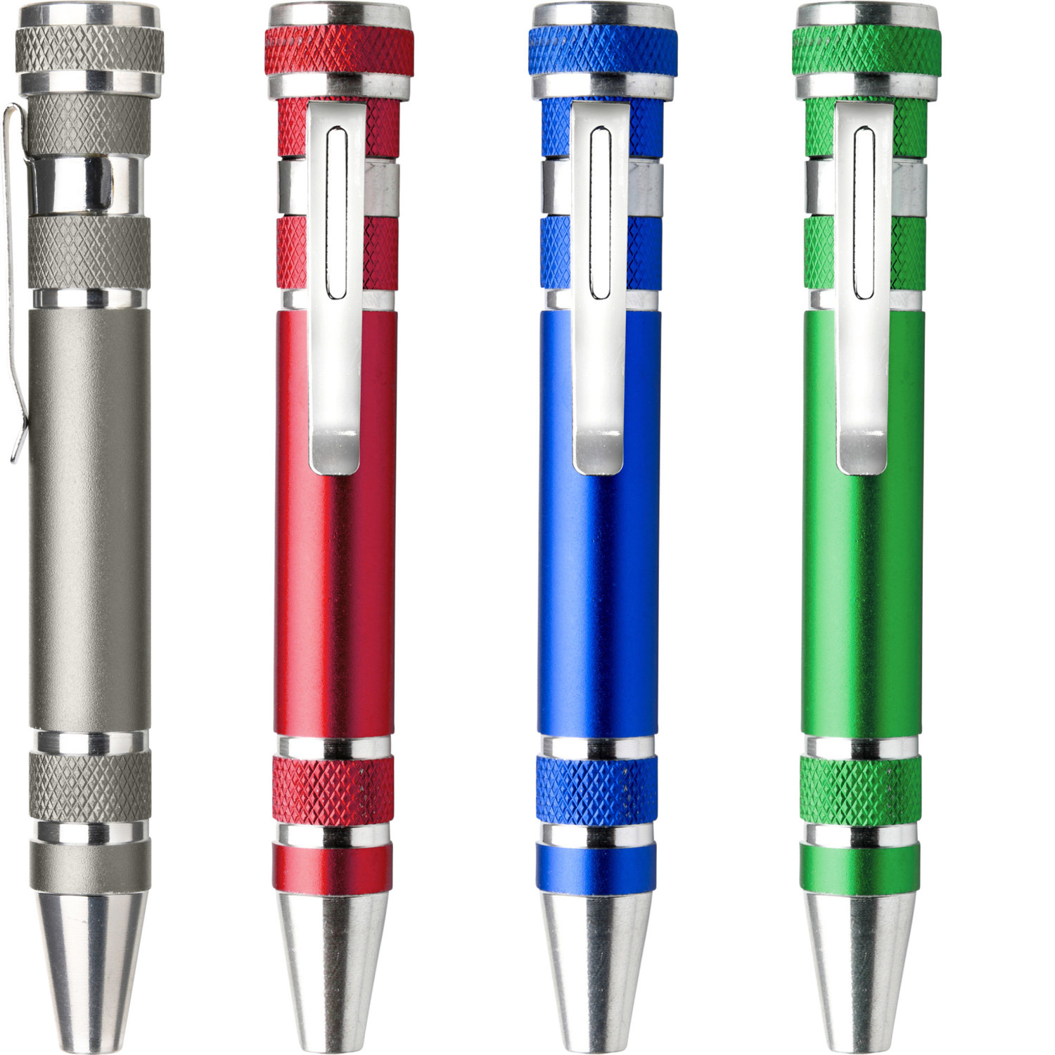 Bit-Set aus Metall mit Metallclip, Akzenten aus Aluminium und 8 Biteinsätzen.