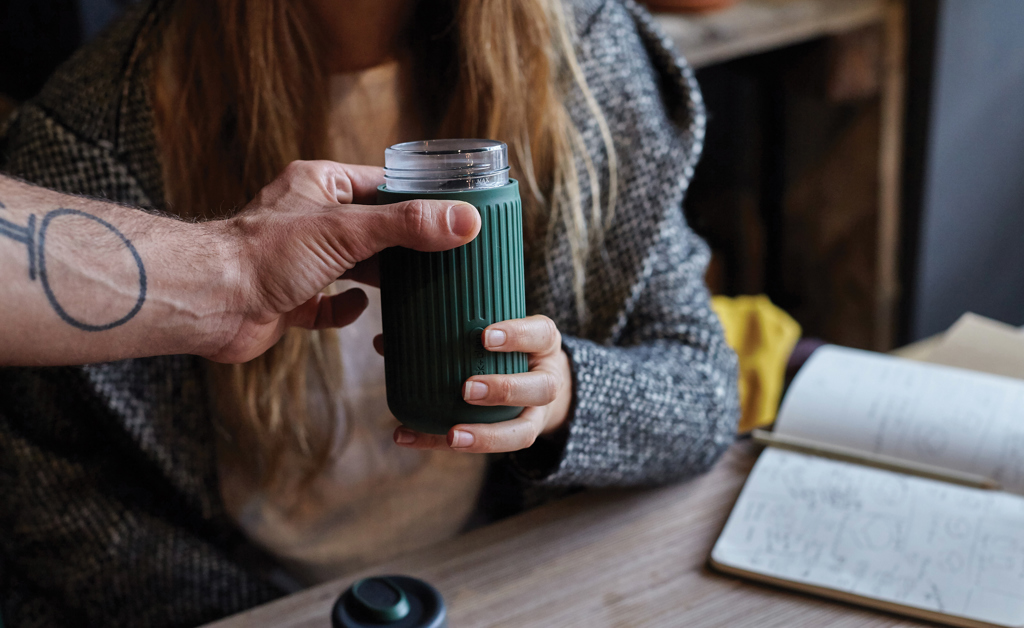 Dieser 340ml-Reisebecher aus mundgeblasenem Borosilikatglas ist sowohl robust als auch leicht. Das geschmacksneutrale Material sorgt dafür, dass Ihre Getränke unverfälscht bleiben, während das absolut auslaufsichere Design unterwegs für Sicherheit sorgt. Der verschließbare Deckel lässt sich leicht mit einer Hand öffnen und schließen, und eine rutschfeste, schützende Silikonhülle bietet einen bequemen und sicheren Halt. Er passt in handelsübliche Fahrradflaschenhalter und Autobecherhalter und ist ebenso praktisch wie stilvoll. Alle Teile sind BPA-frei, spülmaschinenfest und der Deckel lässt sich zur gründlichen Reinigung mühelos zerlegen. Ein nachträglicher angebrachter Druck hält einer Spülmaschine jedoch nicht Stand.