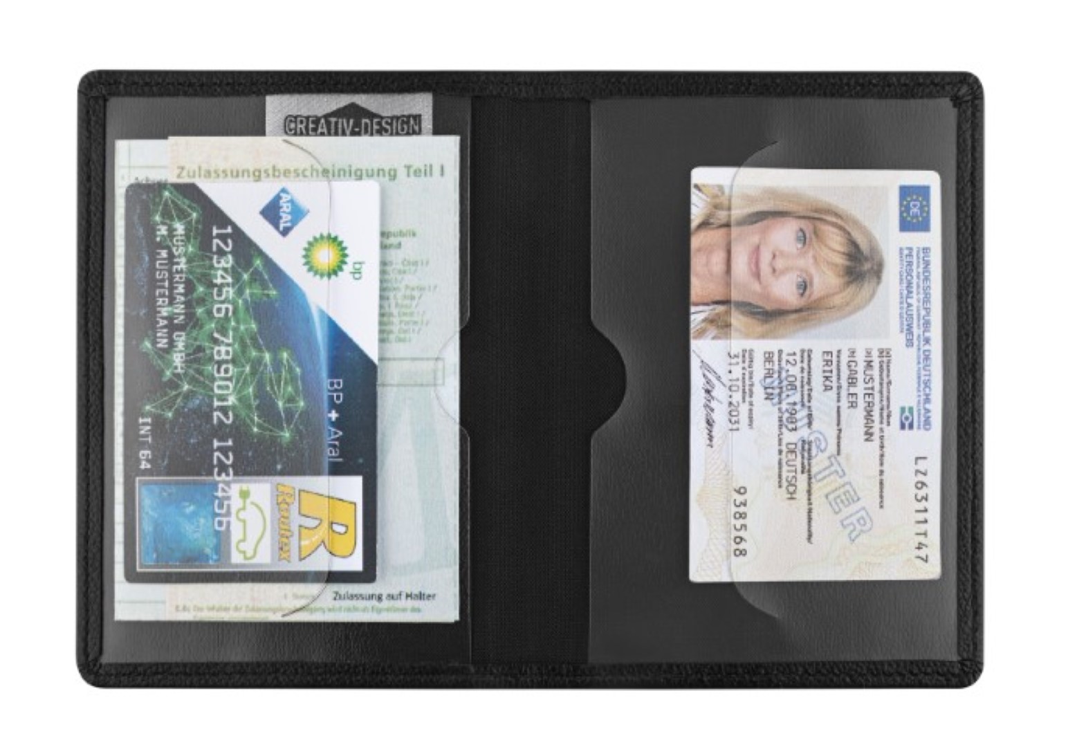 Perfektes Etui für Ihre Papiere & Servicekarten aus edlem Thermo-Kunstleder mit gebugten Kanten und mit 2 großen Papier- und 2 Scheckkartenfächern.