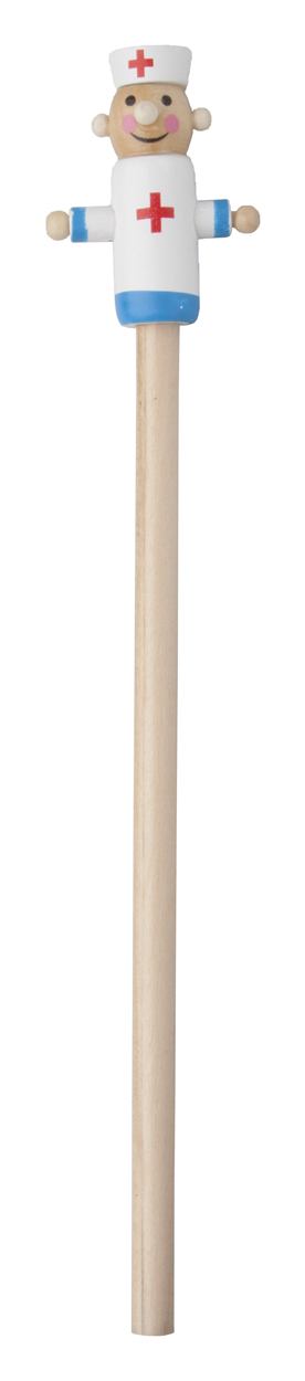 Holzbleistift mit Arzt-Figur, ungespitzt.