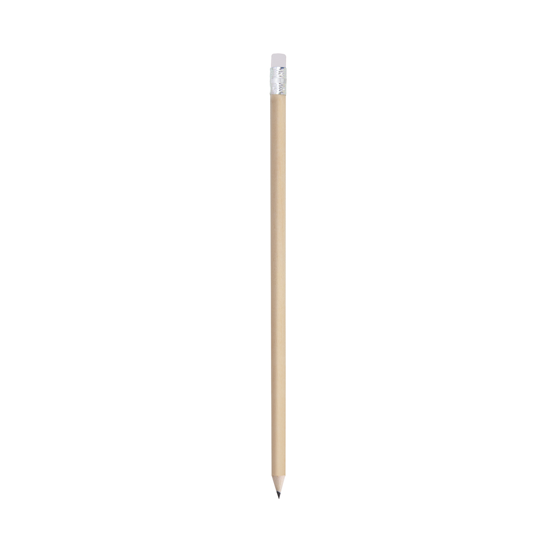 Holzstift mit Naturfinish. Mit rundem Griff und Radiergummi - Radiergummi in verschiedenen Farben erhältlich. Ungespitzte Spitze.