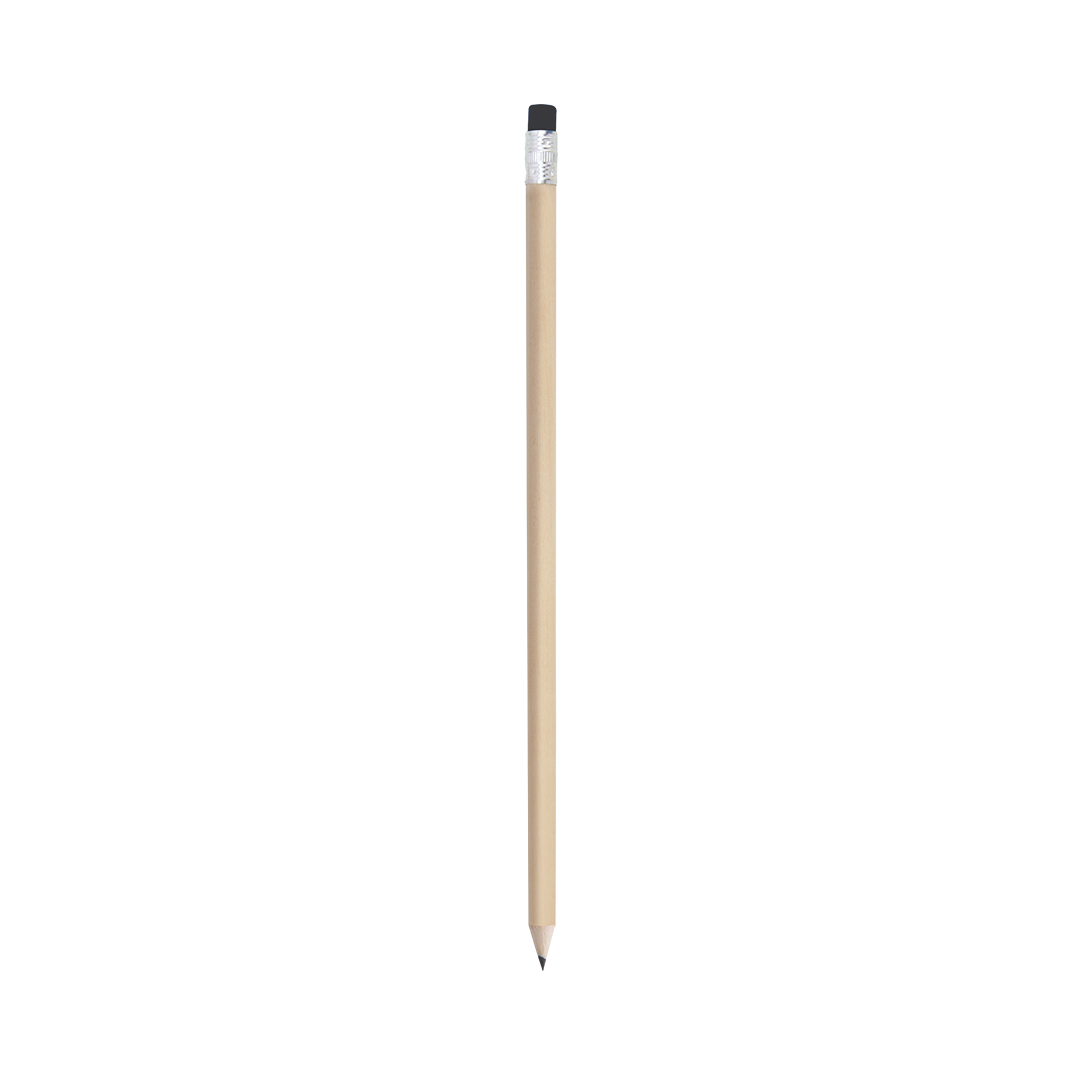 Holzstift mit Naturfinish. Mit rundem Griff und Radiergummi - Radiergummi in verschiedenen Farben erhältlich. Ungespitzte Spitze.