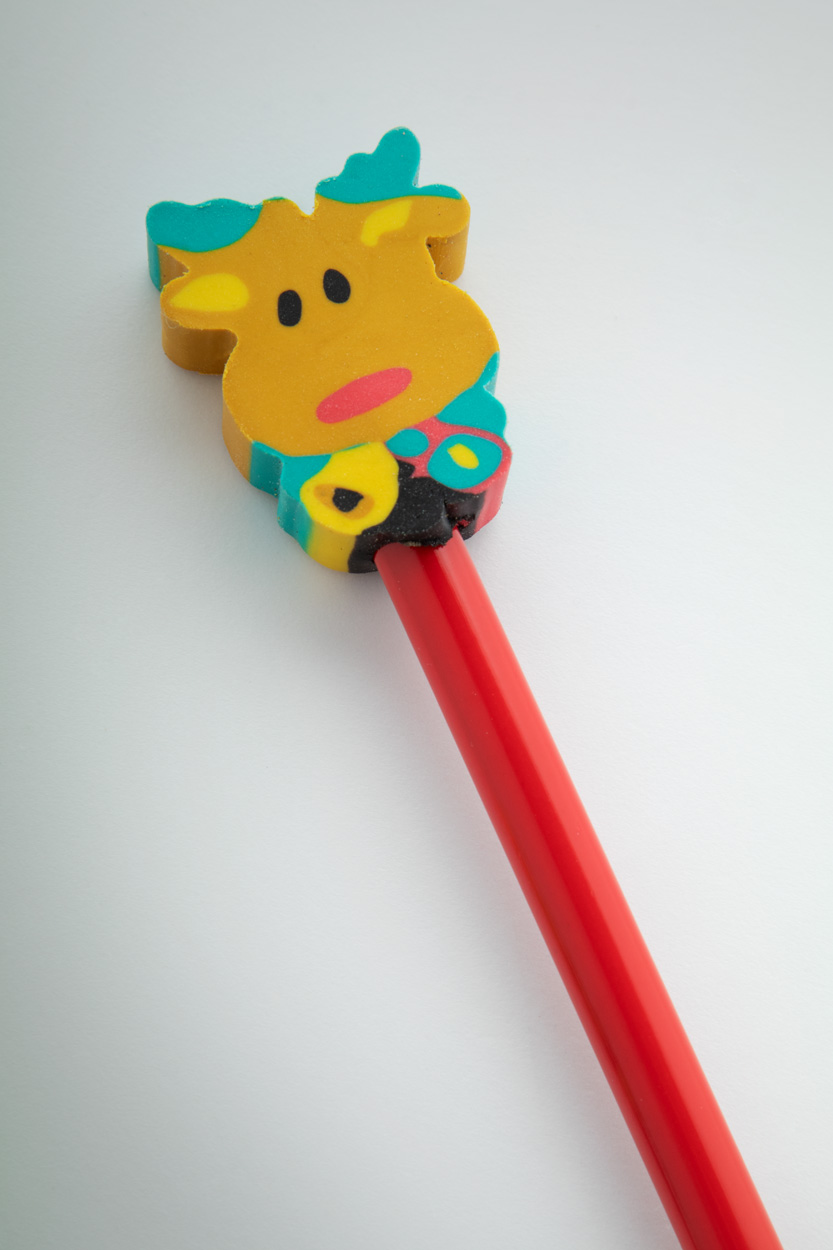 Holzbleistift mit Radiergummi im Weihnachtsdesign, gespitzt. Härtegrad HB.