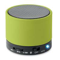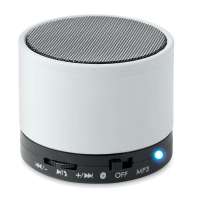 Runder 5.3 wireless Lautsprecher aus ABS in gummiertem Finish. Mit Rufannahme-Funktion. Inklusive SD-Card Port und einem AUX / USB Kabel. Inklusive 1 wieder aufladbare Lithium 450mAh Batterie. Ausgangsleistung: 3W, 3 Ohm und 5V.