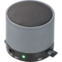 Kabelloser Lautsprecher mit Aluminiumgehäuse. Mit Freisprechfunktion, FM-Radio und Micro-SD-Player-Funktionen und eingebautem, wiederaufladbarem Akku. Inklusive USB-Ladekabel.
