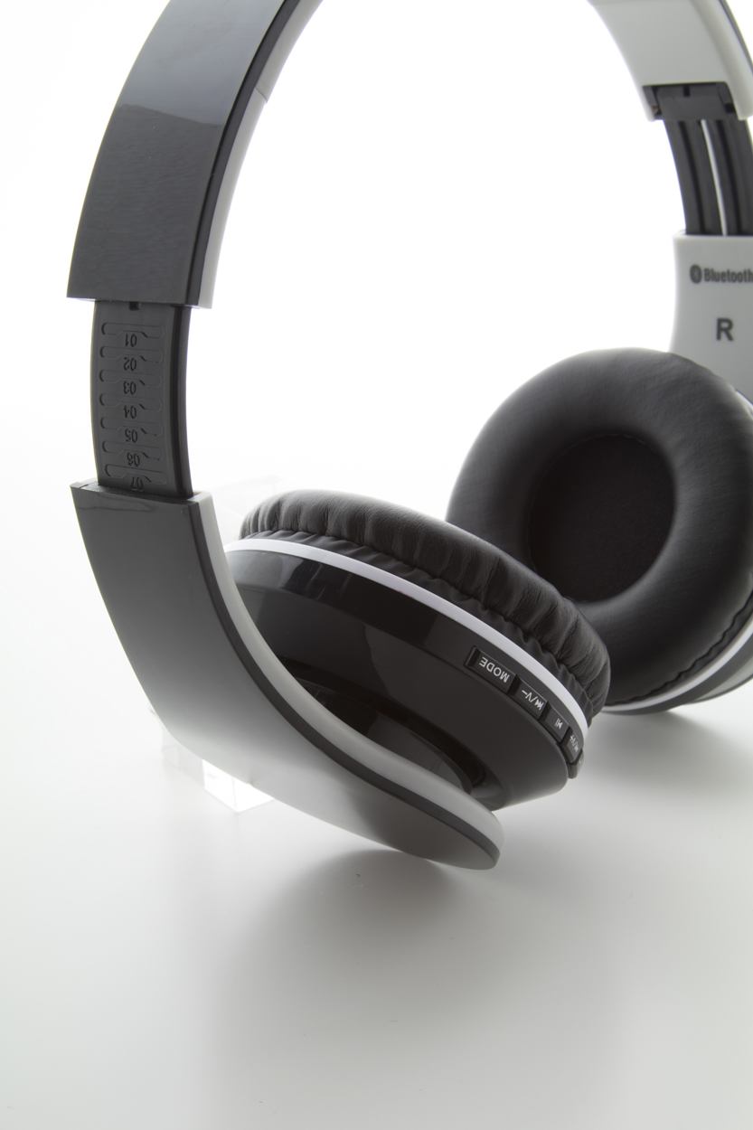 Faltbare, kabellose Kopfhörer aus Kunststoff mit eingebautem Akku. Mit Freisprechfunktion und Micro-SD-MP3-Wiedergabefunktion. Inklusive 3,5-mm-Audiobuchse und USB-Ladekabel.