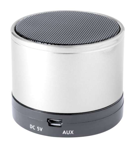 Kabelloser Lautsprecher mit Metallgehäuse. Mit Radio, MP3-Player, Freisprechfunktion und eingebautem, wiederaufladbarem Akku. Inklusive USB-Ladegerät und Aux-In-Kabel.