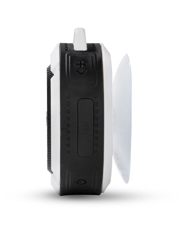Ein kleiner Lautsprecher mit einem Saugnapf mit der Wasserbeständigkeitsklasse IPX4, das heißt einen vollständigen Schutz gegen Spritzwasser und Bespritzen aus verschiedenen Richtungen mit einer Geschwindigkeit von 10 Litern pro Minute. Es ist ideal für Touristen und für den Alltag z. B. bei leichtem Regen. Möglichkeit den Lautsprecher als Freisprecheinrichtung zu verwenden. Die Musikwiedergabe ist über Bluetooth (Version 4.2) oder Micro-SD-Karte möglich. Inklusive Ladekabel mit microUSB-Stecker und Karabiner. Es hat eine Metallplatte zum Markieren vorgesehen. Das Produkt stimmt mit einschlägigen EU-Richtlinien überein und verfügt über das CE-Zeichen. Technische Daten: Ausgangsleistung: 3W x 1 Spannung: 5V S / N-Verhältnis: ≥ 70 dB, Arbeitszeit: 1-1,5 Stunden, Batteriekapazität 300 mAh