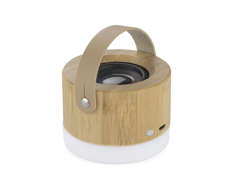 RORAT ist ein Multifunktions- und Design-Lautsprecher. Er besteht aus Bambus mit einem bequemen Öko-Lederband, so dass er unter allen Bedingungen verwendet werden kann. Das eingebaute Licht an der Unterseite macht das Gerät zu einer interessanten Dekoration und liefert Licht, z. B. unter einem Zelt. Musikwiedergabe über Bluetooth (Version 5.0). Das Produkt entspricht den einschlägigen Richtlinien der Europäischen Union und trägt das CE-Zeichen. Technische Daten: Kapazität des Lithium-Ionen-Akkus: 300mAh, Betriebszeit: ca. 3 Std., Ladezeit: 2,5 h. Inklusive Micro-USB-Kabel.