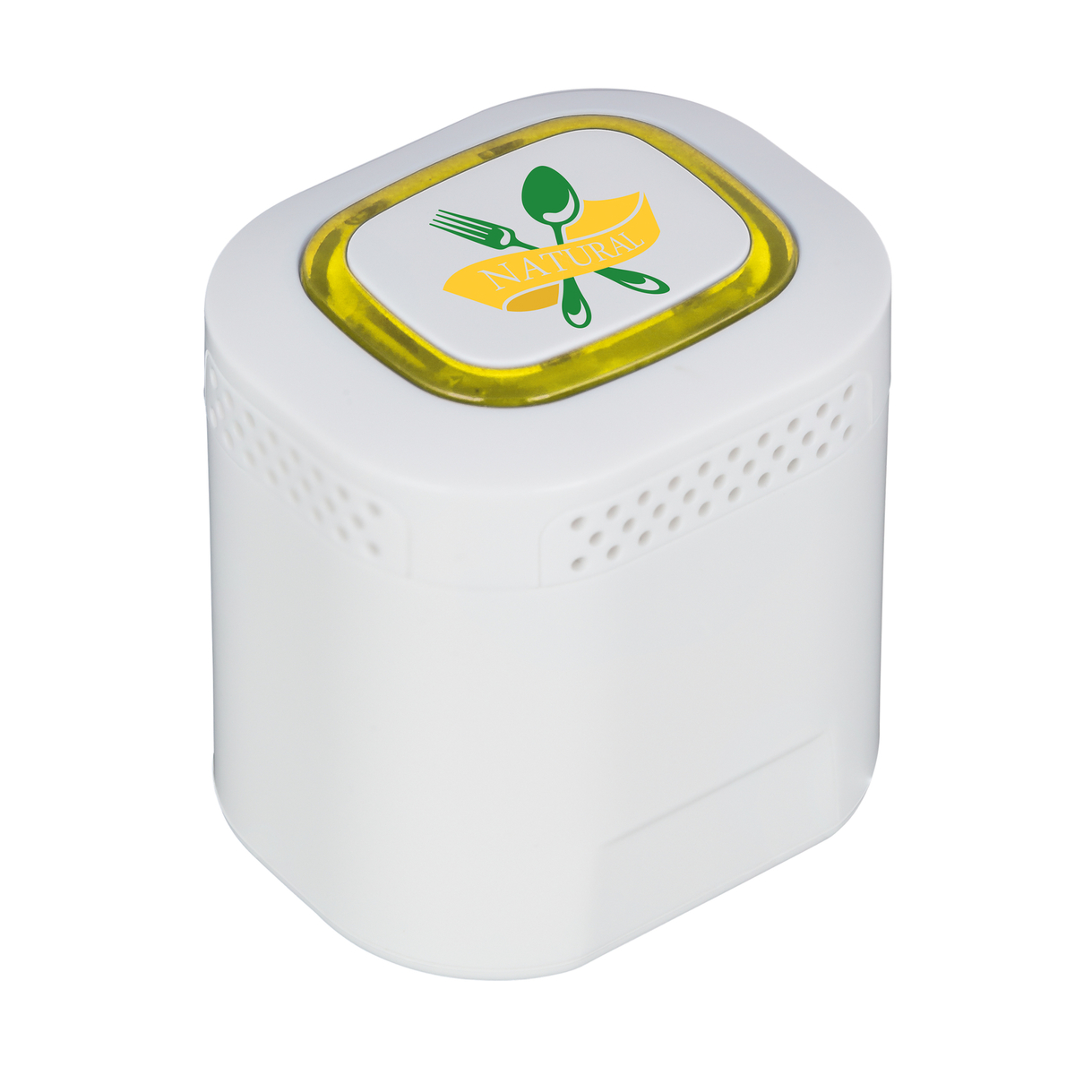 Dieser kleine und klangvolle Bluetooth®-Lautsprecher mit Bluetooth®-Technologie 4.1 (ca. 10 m Reichweite) wird komplett über Ihr Smartphone oder das angeschlossene Audiogerät gesteuert und hat eine Spielzeit von bis zu 4 Stunden. Sie können ihn an der integrierten Schlaufe sogar am Schlüsselbund befestigen. Mitgeliefert wird ein 2-in-1 Ladekabel, das auch per 3,5 mm Klinkenstecker als Verbindungsgerät zum Audiogerät dienen kann. Er hat 2 Watt Ausgangsleistung. Der umlaufende Farbring an der Werbefläche wird per LED hinterleuchtet.