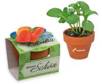 Echte Pflanzen bilden eine zusätzliche Kategorie, da sie nicht nur visuell, sondern auch sinnbildlich wirken. Kleine Töpfe, Mini-Sets oder Grow-Kits ermöglichen es, Werbebotschaften unmittelbar mit Wachstum zu verknüpfen. In vielen Sortimenten entstehen daraus Produkte, die durch ihre natürliche Entwicklung einen anderen Zugang zur Markenwirkung schaffen. Ein Blumenartikel mit Logo kann dadurch je nach Material entweder statisch wirken oder sich im Laufe der Nutzung weiterentwickeln.