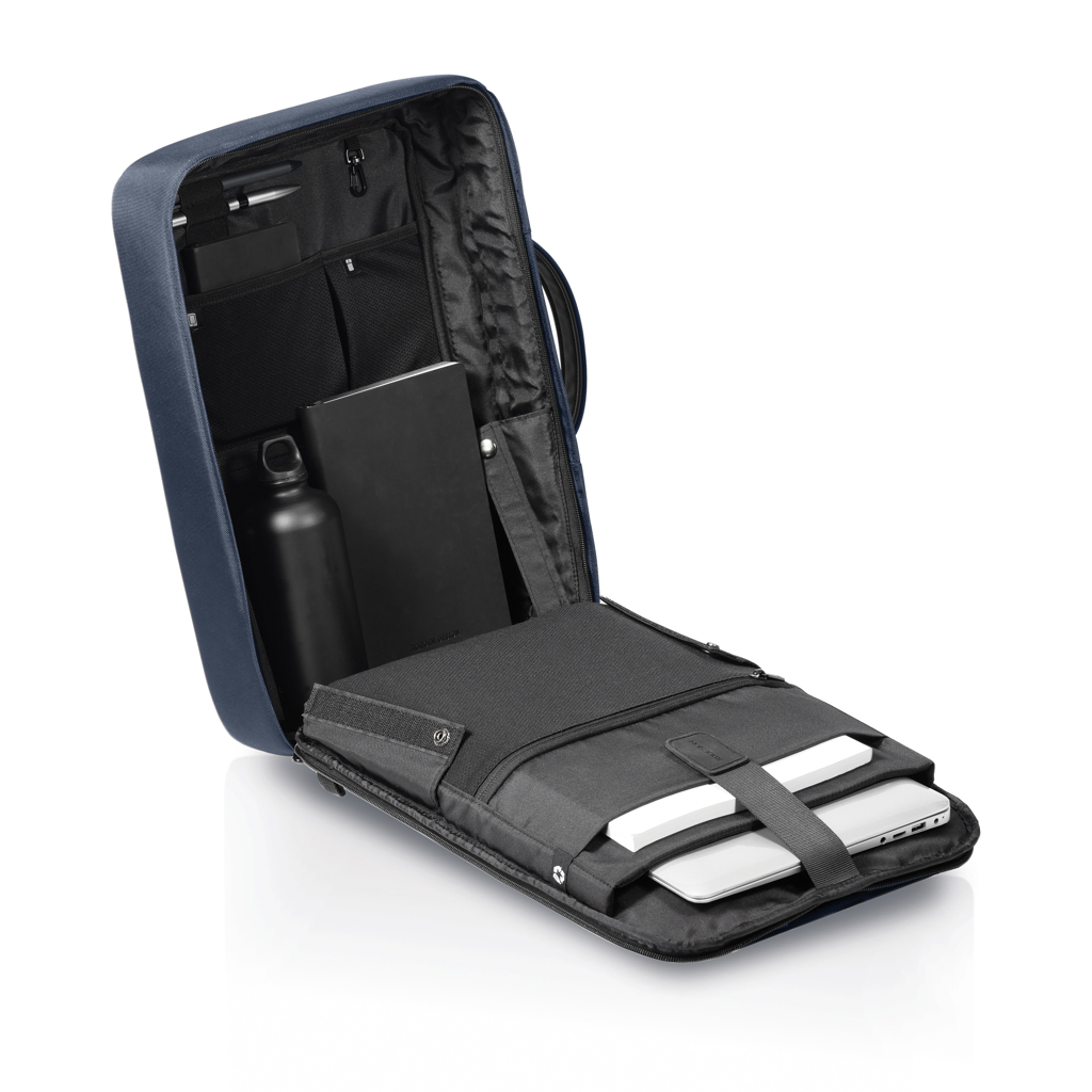 Mit dem neuen Bobby Bizz 2.0 Rucksack sind Ihre Sachen sicher und stilvoll unterwegs. Bereit für jeden geschäftlichen Anlass, können Sie diesen Rucksack in Sekundenschnelle in eine Aktentasche verwandeln, indem Sie einfach die Schultergurte in die Rückentasche stecken. Um all Ihre Sachen sicher zu halten, hat das ikonische Bobby-Diebstahlschutzdesign keinen Frontzugriff, versteckte Reißverschlüsse und eine versteckte RFID-geschützte Tasche. Er ist mit schnitthemmendem Material und einem eingebauten Metallrahmen ausgestattet. Mithilfe des integrierten Schloss im rechten Riemen können Sie Ihren Bobby Bizz 2.0 auch sicher an jedem festen Gegenstand befestigen. Im Inneren des Rucksacks befinden sich gepolsterte Fächer für einen 16-Zoll-Laptop, ein Tablet bis 12,9 Zoll und Ihre gesamte professionelle Ausrüstung. Aus recyceltem PET mit AWARE™ Tracer hergestellt, der die Verwendung tatsächlich recycelter Materialien garantiert. 33% recycelter Inhalt.