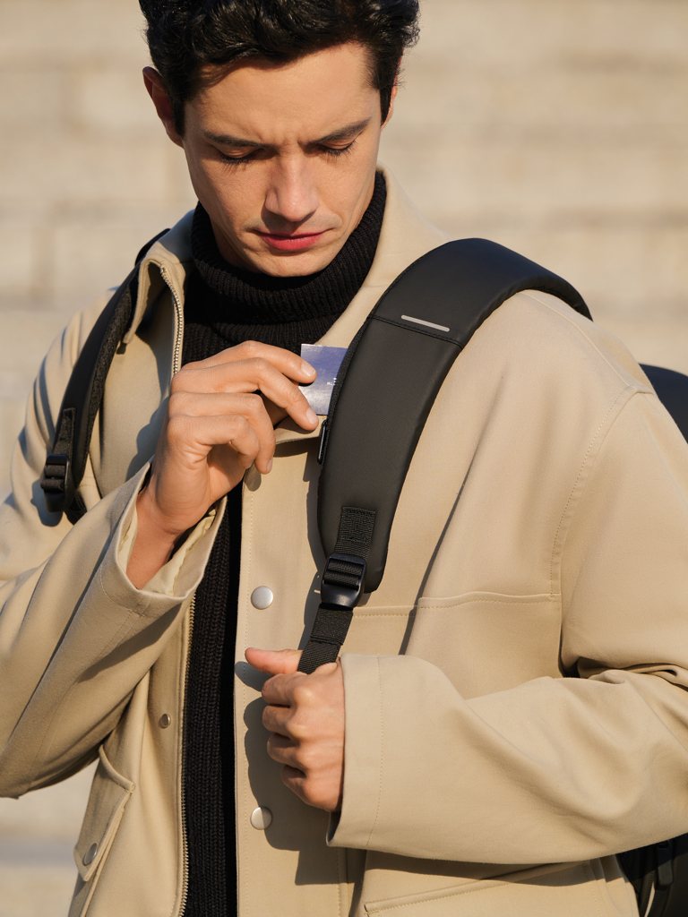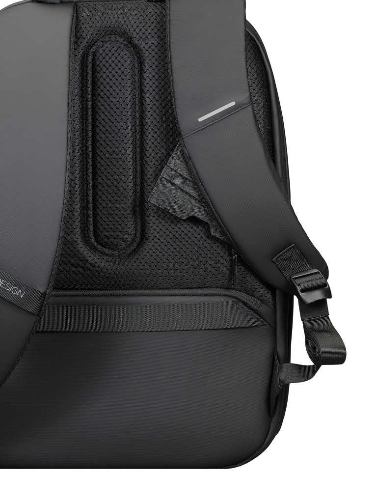 Erleben Sie modernes Design und verbesserte Sicherheit mit dem Bobby Edge. Mit seinem Anti-Diebstahl-Design und dem selbstsichernden Metallreißverschluss hält dieser Rucksack Ihr Hab und Gut sicher. Seine leichte und dennoch robuste Konstruktion sowie die wasserabweisende Außenseite und der wasserdichte Reißverschluss sorgen für Schutz vor den Elementen. Die intelligente Inneneinteilung erleichtert den Zugriff auf das Wesentliche. Eine diskrete, RFID-geschützte Tasche auf der Rückseite und ein verstecktes Fach für ein Ortungsgerät sorgen für mehr Komfort und Sicherheit bei Ihren täglichen Abenteuern. Der Bobby Edge verbindet modernes Design mit fortschrittlichen Sicherheitsfunktionen und bietet dem modernen Entdecker eine stilvolle und geschützte Reise. Hergestellt aus R-Pet-Gewebe mit dem AWARE™-Tracer. Mit AWARE™ wird die Verwendung von tatsächlichem Recycling-Gewebe garantiert. 14% recycelter Inhalt. Eingetragenes Design®