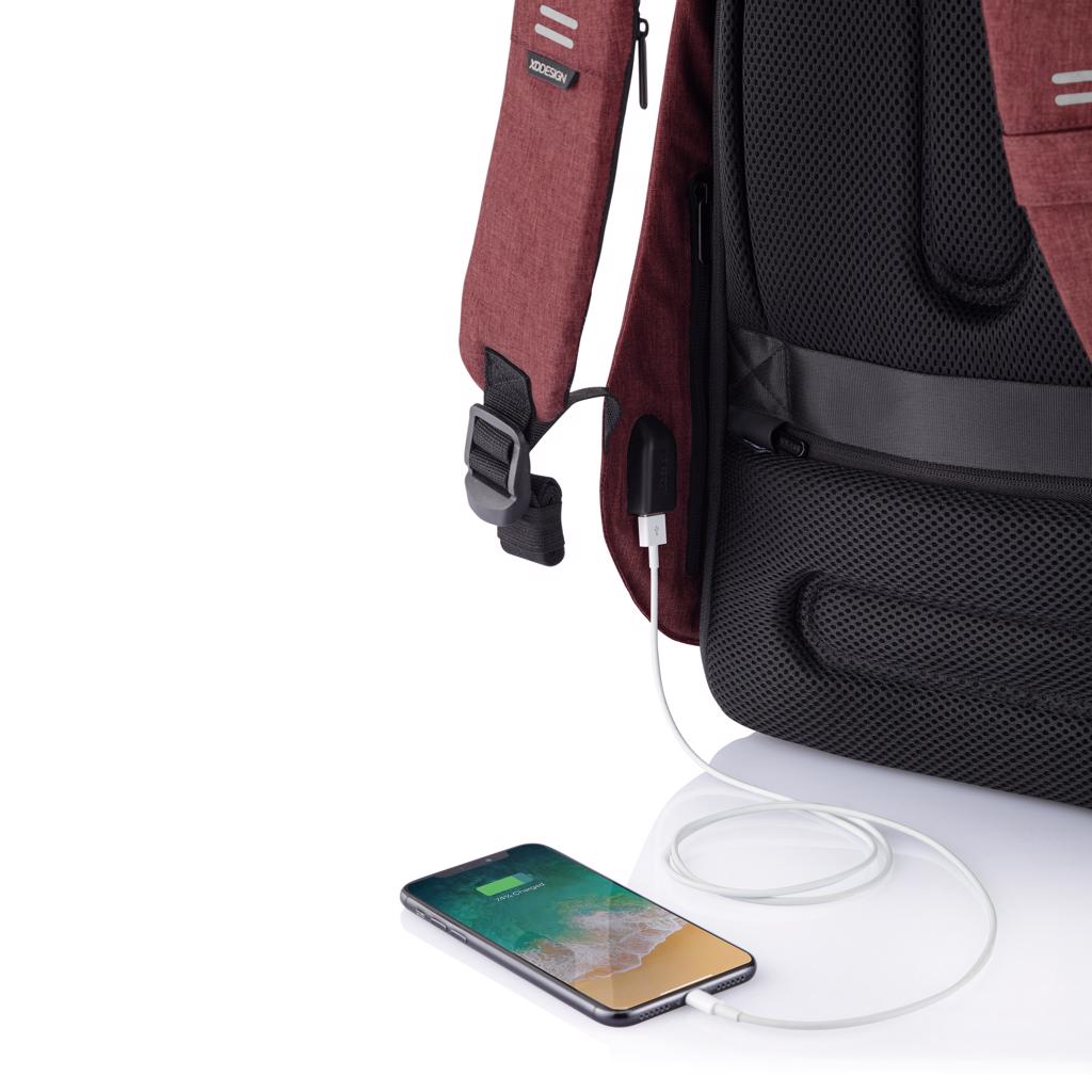 Die Bobby Hero-Linie repräsentiert eine neue Ära der Anti-Diebstahl-Rucksäcke und bietet Sicherheit, Komfort und Organisation für Ihre täglichen Reisen. Schnittfester Schutz, diskrete Reißverschlüsse und verdeckte Taschen sorgen für die Sicherheit Ihrer Habseligkeiten auf dem Weg zum Arbeitsplatz. Der Bobby Hero Regular ist mit einem integrierten USB-Ladeanschluss, wasserabweisendem Material, leuchtenden Sicherheitsstreifen und einem Gepäckgurt für zusätzlichen Komfort ausgestattet. Die gepolsterten Fächer im Inneren bieten Platz für einen 15,6"-Laptop und ein Tablet bis zu 12,9". Hergestellt aus rPET mit dem AWARE™-Tracer, der die Verwendung von echtem Recycling-Gewebe garantiert. 29% recycelter Inhalt. Registered Design®