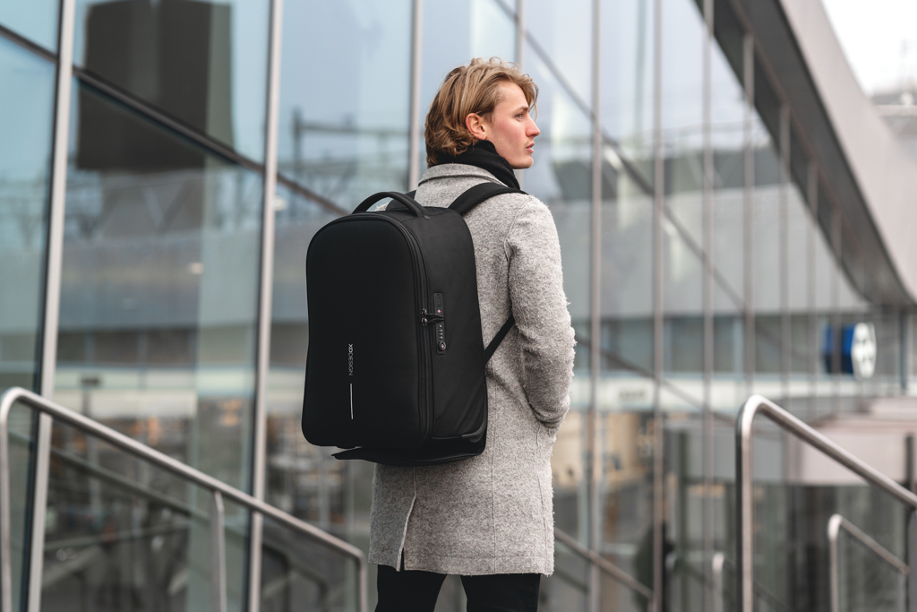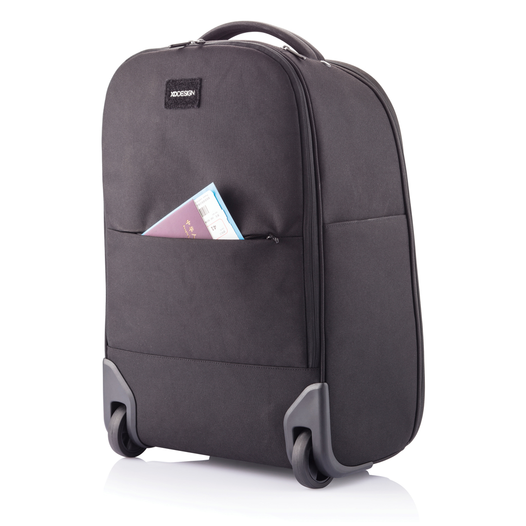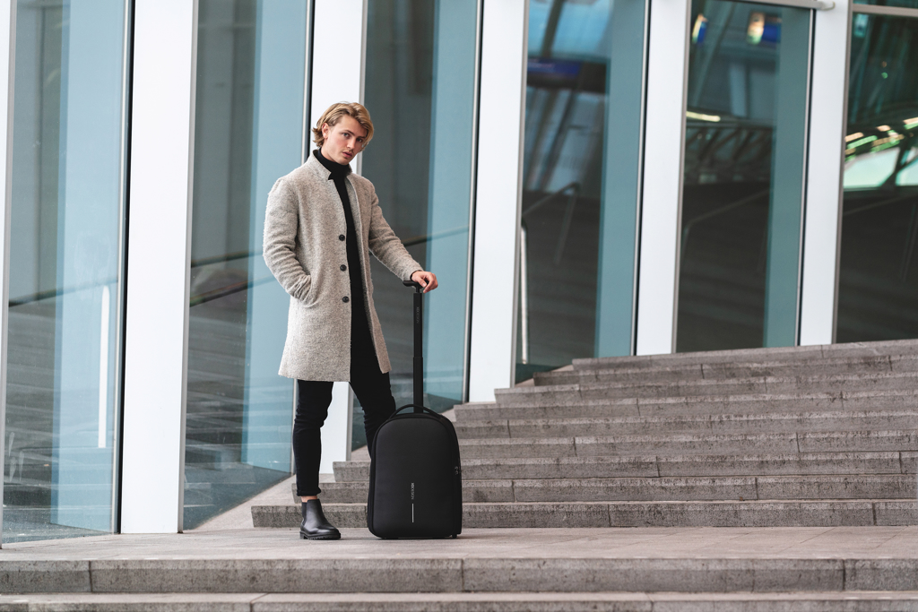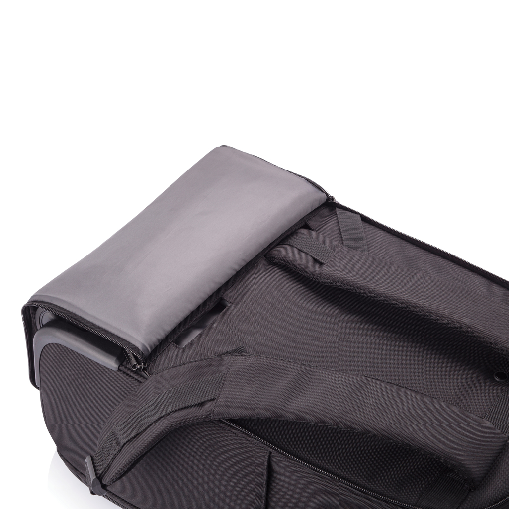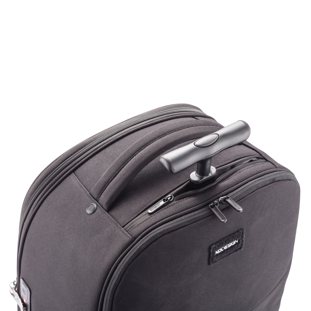 Komfortabel wie ein Trolley und praktisch wie ein Rucksack. Der Bobby Rucksack Trolley ist der perfekte Begleiter für Kurztrips oder tägliches pendeln. Verwandeln Sie den Rucksack ganz einfach in einen Trolley, indem Sie die Schultergurte in das Rückenfach stecken und die Trolleystange ausziehen. Wenn er dann wieder als Rucksack genutzt werden verstauen sie die Trolleystange sowie die Räder, so dass auch ihr Rücken sauber bleibt. All die bekannten Bobby Anti-Diebstahl-Features hat auch der Bobby Rucksack Trolley kombiniert mit einem TSA Schloß. Im Inneren finden sich verschiedene Fächer, auch eines für Ihren 17" Laptop. Zudem ein Fach für Ihre Flasche sowie ein RFID geschütztes Fach. Hergestellt aus recyceltem PET mit AWARE™ Tracer. In Handgepäcksgröße. Registered design®