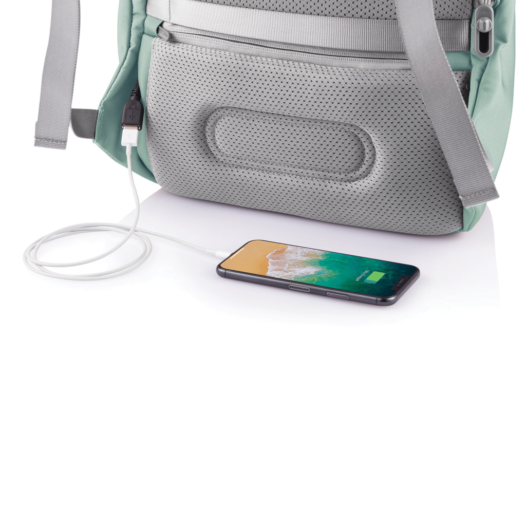Ob für die Uni, die Schule, die Arbeit oder die nächste Reise - der Bobby Soft Backpack ist bereit! Das kultige Bobby Anti-Diebstahl-Design mit versteckten RFID-geschützten Fächern, ohne Zugriff auf die Vorderseite und mit versteckten Reißverschlüssen wird jetzt durch einen Twist-Lock-Reißverschluss-Puller ergänzt. Das Hauptfach bietet ein gepolstertes 15,6"-Laptopfach, ein Notebookfach, weitere kleinere Taschen und einen Schlüsselanhänger-Clip. Der obere Teil des Rucksacks ist erweiterbar und bietet zusätzlichen Platz. Dieser Rucksack ist außerdem mit einem integrierten USB-Ladeanschluss und wasserabweisendem Material ausgestattet. Hergestellt aus rPET-Gewebe mit dem AWARE™ Tracer, der die Verwendung von tatsächlich recyceltem Stoff garantiert. 46% recycelter Inhalt. Registered Design®