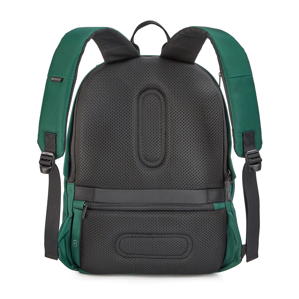 Ob für die Uni, die Schule, die Arbeit oder die nächste Reise - der Bobby Soft Backpack ist bereit! Das kultige Bobby Anti-Diebstahl-Design mit versteckten RFID-geschützten Fächern, ohne Zugriff auf die Vorderseite und mit versteckten Reißverschlüssen wird jetzt durch einen Twist-Lock-Reißverschluss-Puller ergänzt. Das Hauptfach bietet ein gepolstertes 15,6"-Laptopfach, ein Notebookfach, weitere kleinere Taschen und einen Schlüsselanhänger-Clip. Der obere Teil des Rucksacks ist erweiterbar und bietet zusätzlichen Platz. Dieser Rucksack ist außerdem mit einem integrierten USB-Ladeanschluss und wasserabweisendem Material ausgestattet. Hergestellt aus rPET-Gewebe mit dem AWARE™ Tracer, der die Verwendung von tatsächlich recyceltem Stoff garantiert. 46% recycelter Inhalt. Registered Design®