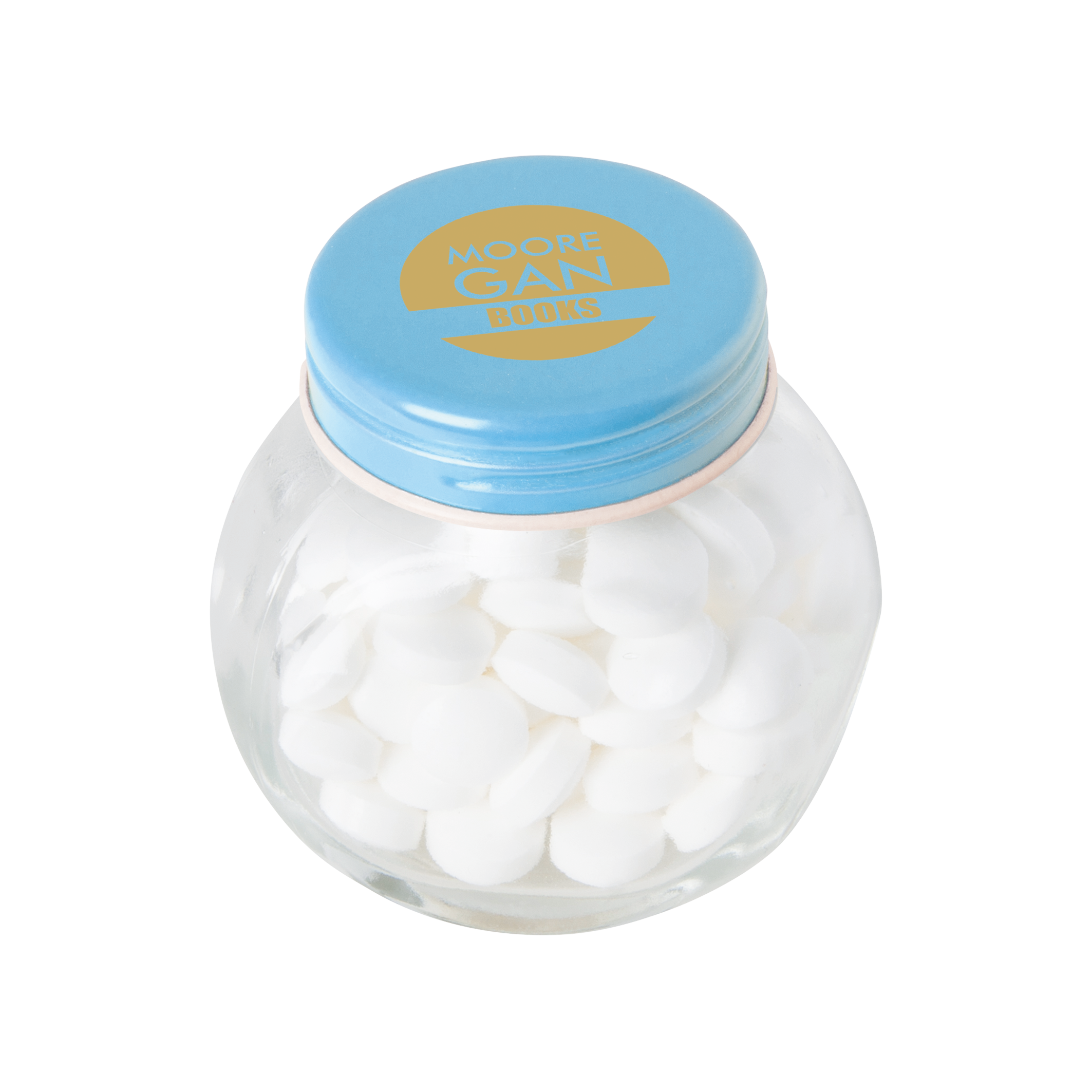 Bonbonglas mini gefüllt mit ca. 40 gr. Mints mit farbigem Deckel, 53 x 35 x 55 mm, Bedruckung auf Deckel, mit verschiedenen Füllungen: Schokoperlen gold, knuspriger Schokoladen festival, knusprige schokoladen Juwelen, goldglitzer Milchschokolade, kleine Herzen gold, kleine Herzen rot / weiß, marmorgold Schoko dunkel, mikro Milchschokoladeneier, mini Schokoperlen gold, mini Schokoperlen kupfer, roseglitzer Milchschokolade, silberglitzer Milchschokolade und sommerkonfetti Schoko dunkel.