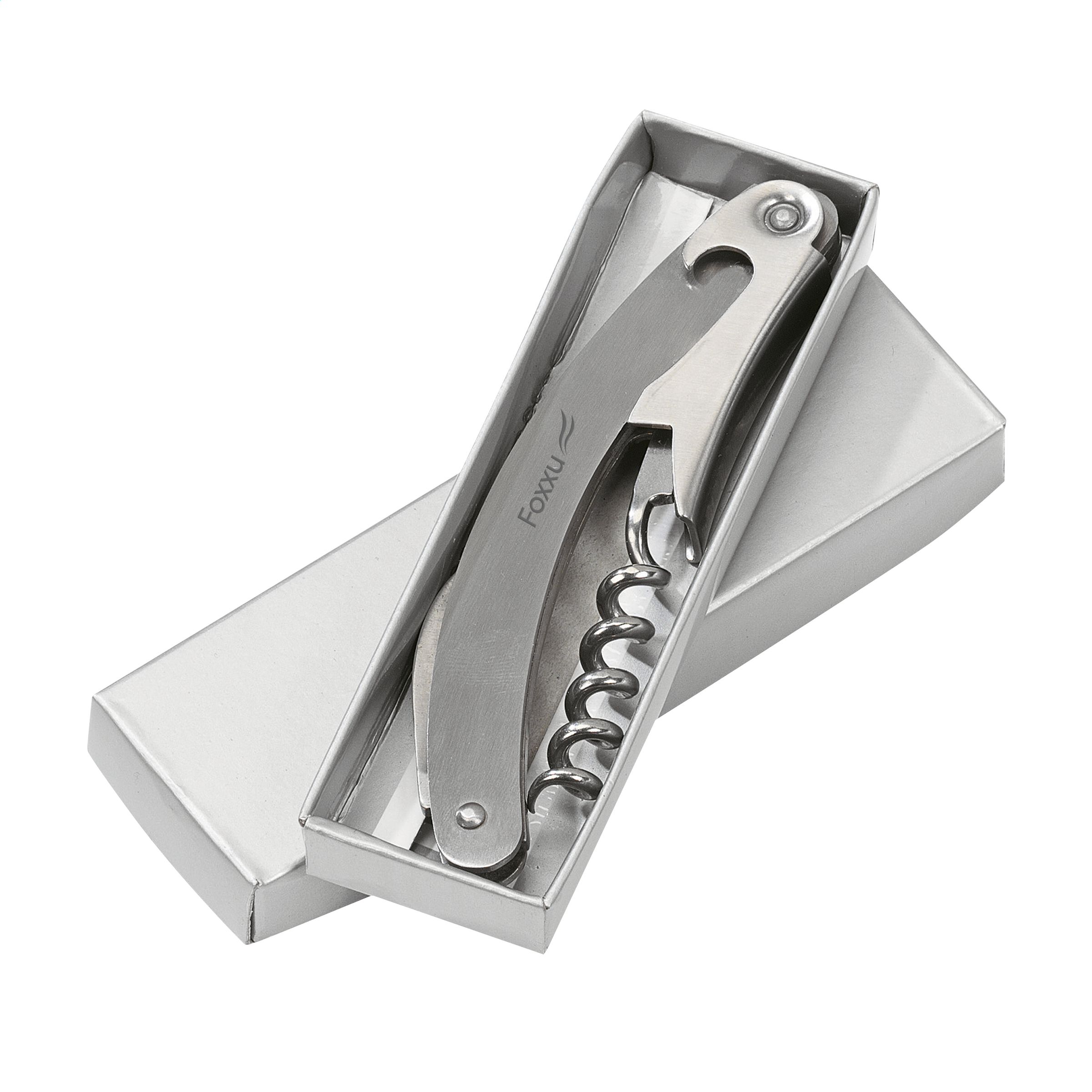 Kellnermesser aus Edelstahl. Wird einzeln in einem Kraftkarton geliefert.