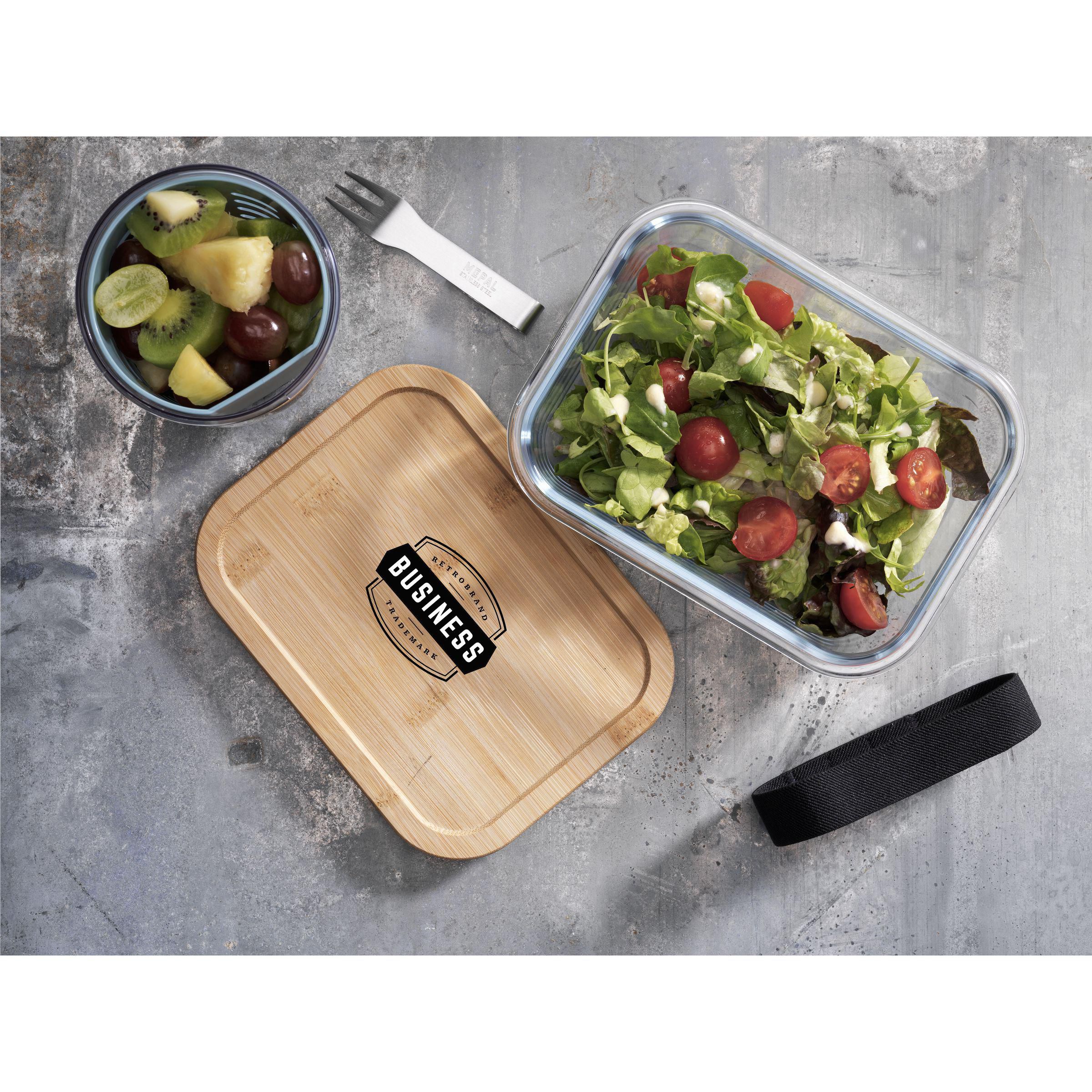Lunchbox aus hochwertigem Borosilikatglas, die hohen Temperaturunterschieden standhält. Mit einem Bambusdeckel, der dank der Silikonkante an der Unterseite perfekt schließt. Dadurch kann der Inhalt luftdicht gelagert werden. Somit auch als Frischbox geeignet. Inklusive Gummiband zum Verschließen. Nur das Glas ist spülmaschinenfest und für den Einsatz in Mikrowelle, Backofen und Gefrierschrank geeignet. Um den Aufdruck zu erhalten, wird Waschen von Hand empfohlen.