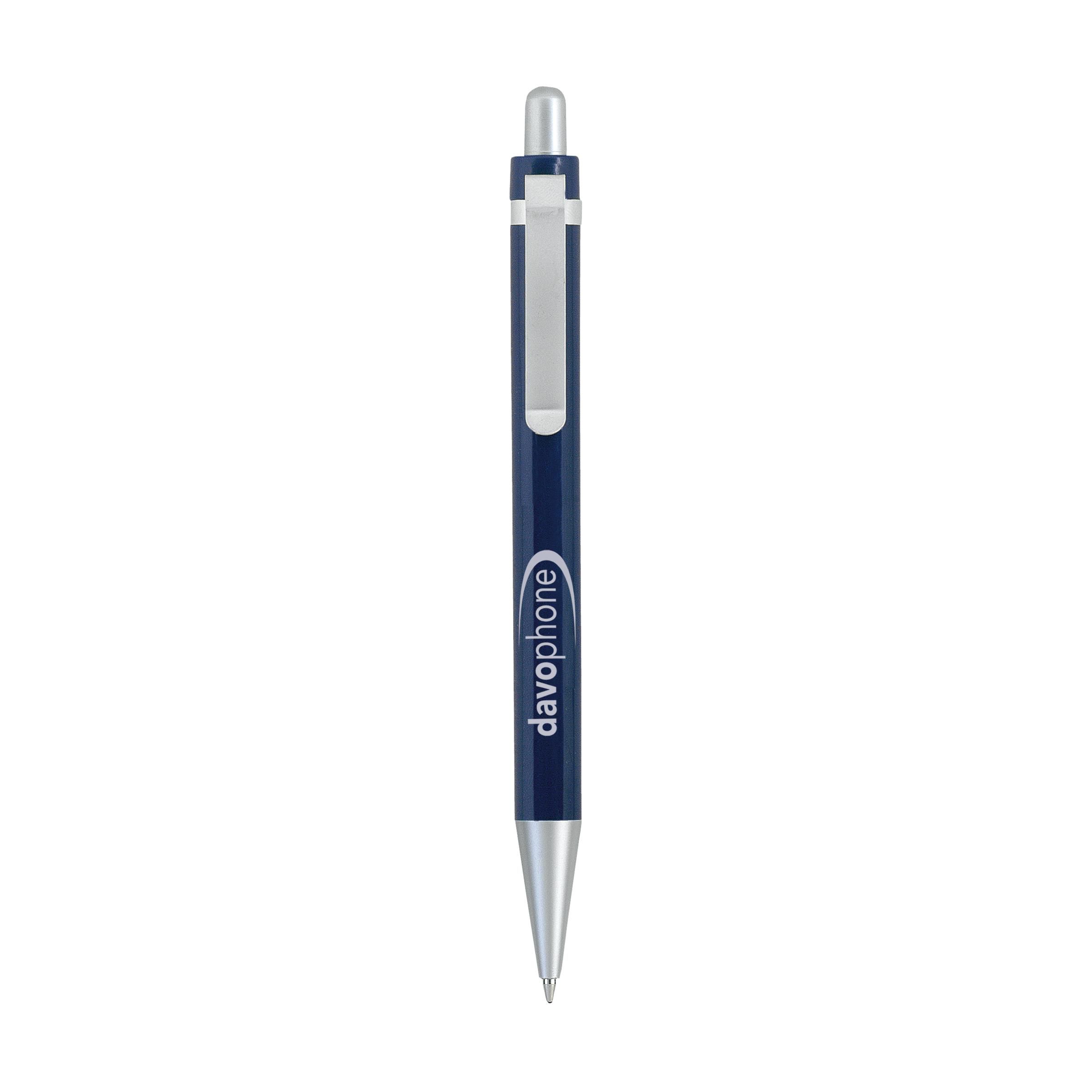 Beschreibung: Blauschreibender Kugelschreiber mit mattmetallenem Clip.