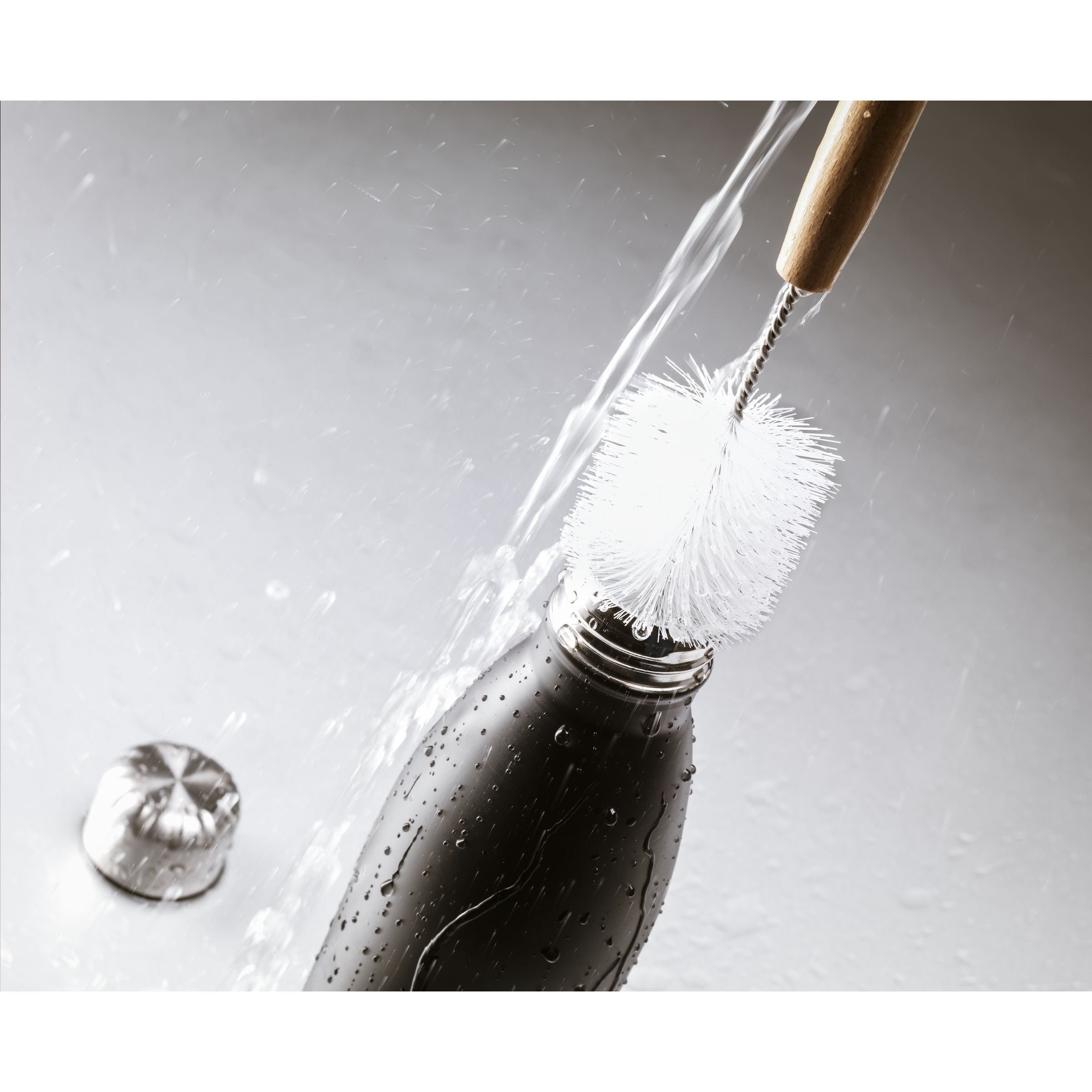 Reinigungsbürste zur einfachen Reinigung von Trinkflaschen. Auch für Flaschen mit einem schmalen Flaschenhals geeignet. Durch den gedrehten Bürstenkopf lässt sich auch der Flaschenboden mühelos reinigen. Mit Holzgriff und Aufhängeschlaufe.