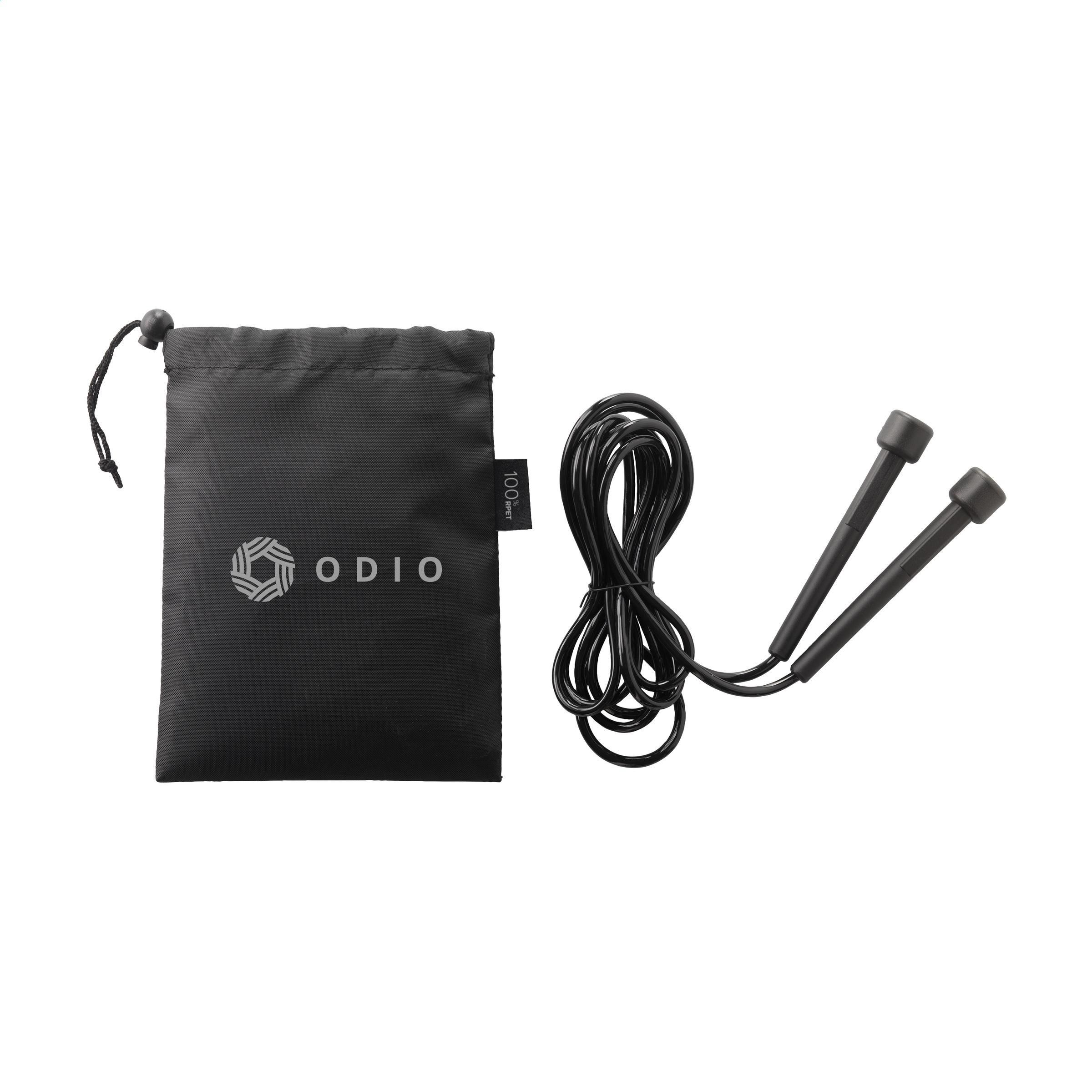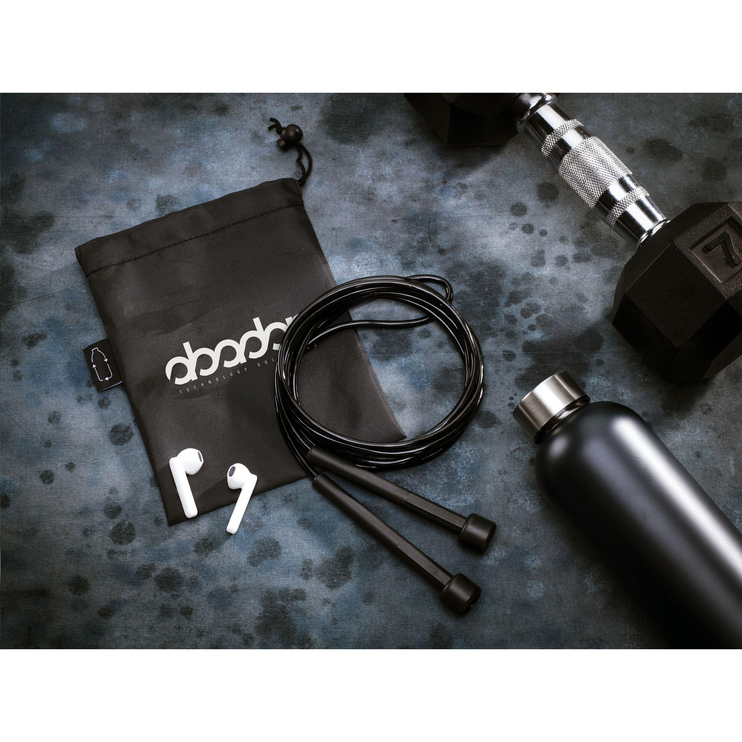 PVC-Sportspringseil (270 cm) mit Kunststoffgriffen. Wird einzeln in einem RPET-Polyester Beutel geliefert.