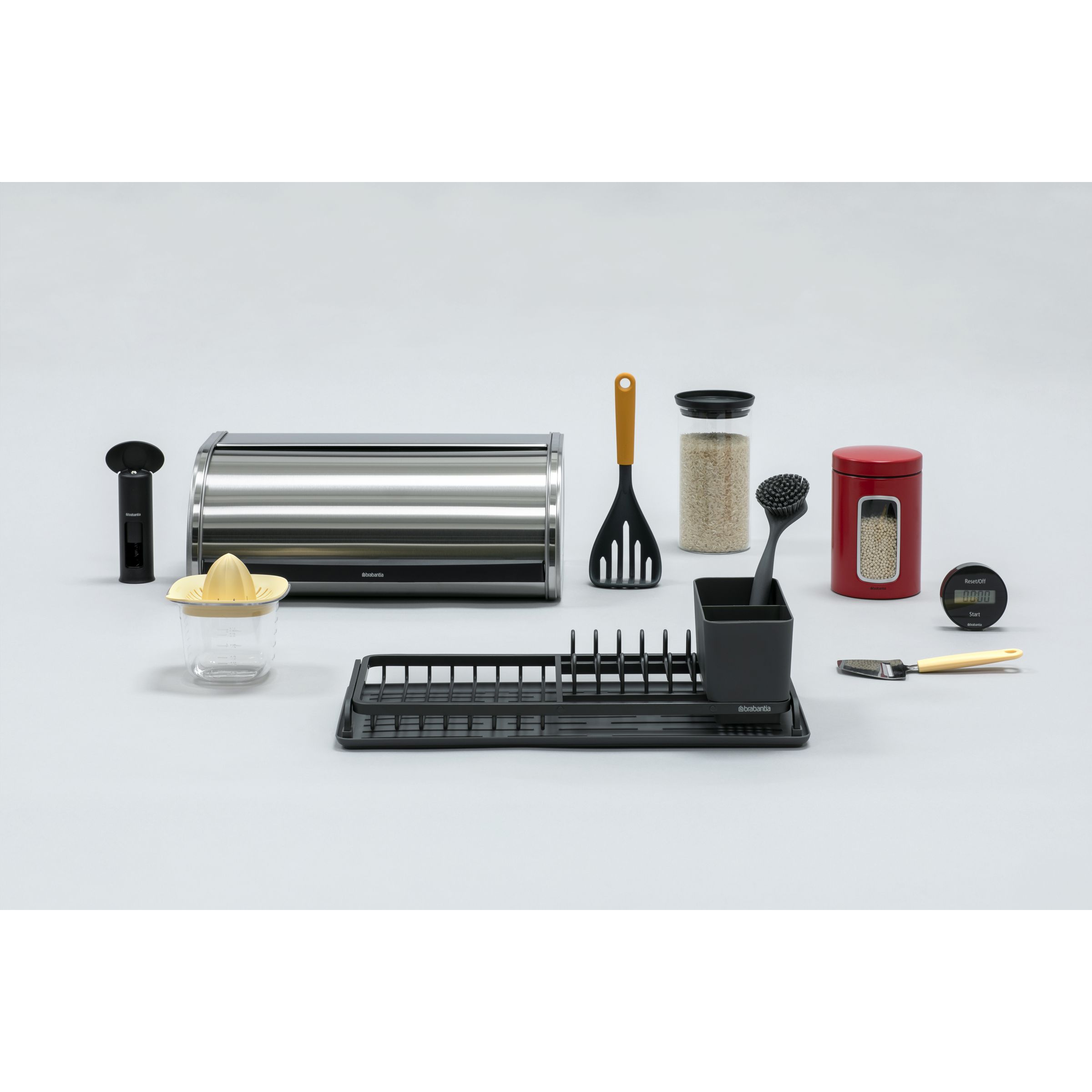 Brabantia Korkenzieher aus Kunststoff. Passt auf alle Standardflaschen (bis 4,57 cm Ø), liegt gut in der Hand und lässt sich dank des extra großen Drehgriffs mühelos bedienen. Der Zentrierring sorgt dafür, dass die Spirale immer in der Mitte des Korkens sitzt. Die Spirale ist mit einer "Antihaftbeschichtung" versehen – keine Korkreste im Wein. Mit integriertem Kapselschneider und einfachem Entkorkmechanismus, um den Korken aus der Flasche und vom Korkenzieher zu entfernen. Zu 99% recycelbar. Mit 5 Jahren Herstellergarantie.