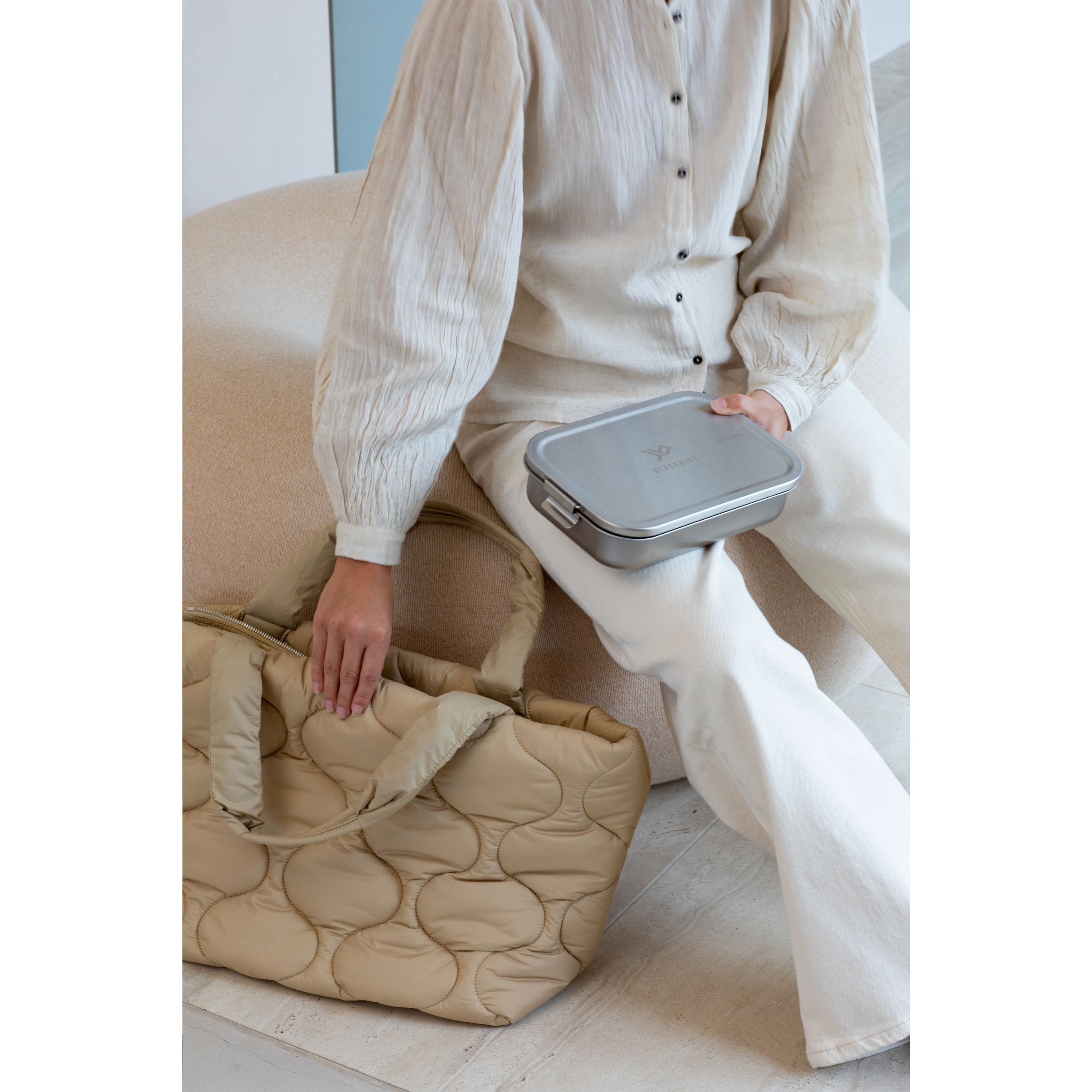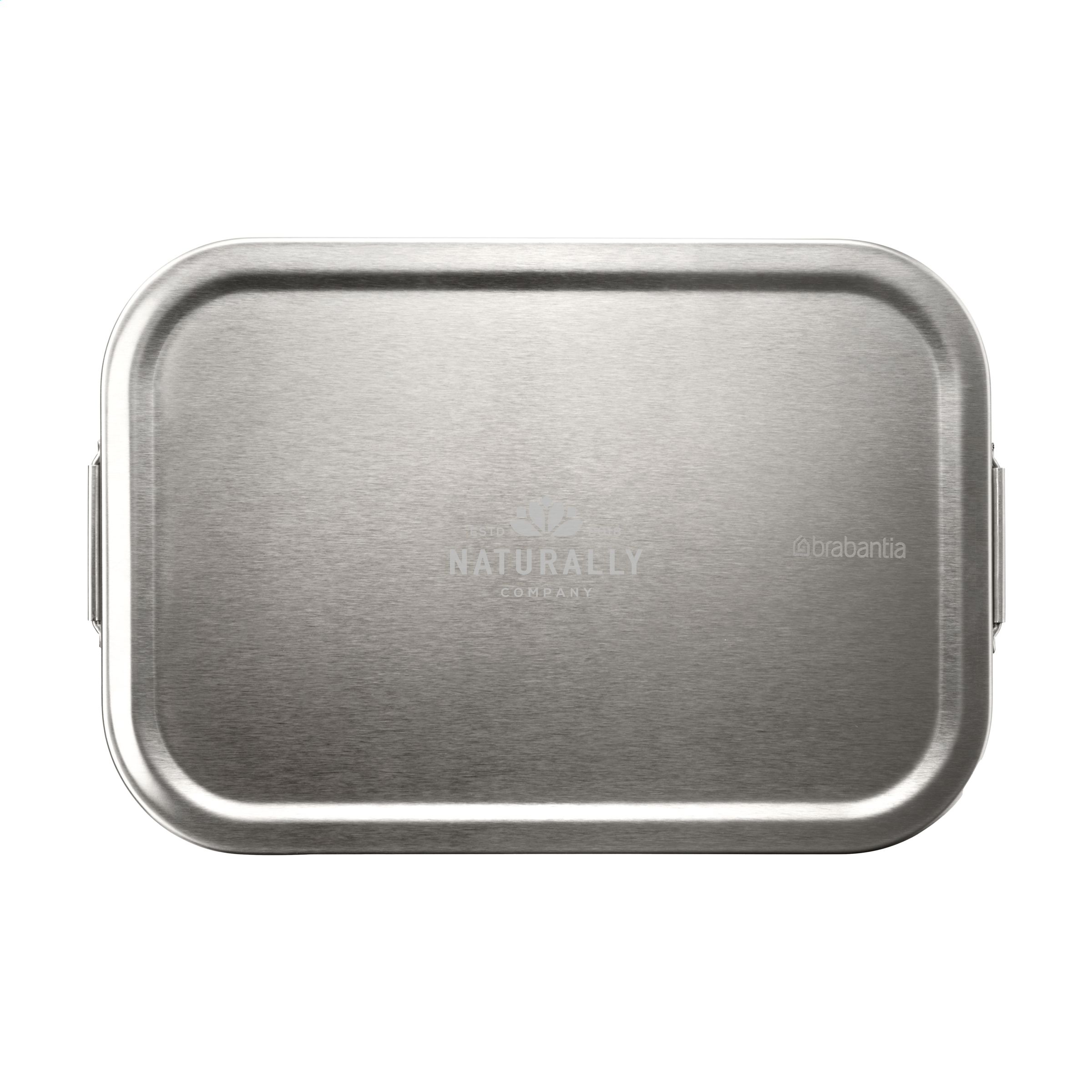 Lunchbox der Marke Brabantia aus hochwertigem Edelstahl mit herausnehmbarer Trennwand. So bleiben Ihre Brote, Wraps und Brötchen schön getrennt. Die wiederverwendbare Lunchbox hat einen sicheren Klickverschluss und einen luftdichten Verschluss, damit dein Mittagessen länger frisch bleibt. Backofenfest (ohne Deckel), gefrierfest und spülmaschinenfest. Hergestellt aus 55% recyceltem Material. 100% recycelbar. Mit 5 Jahren Herstellergarantie. Fassungsvermögen 2.000 ml.