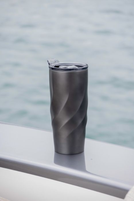 Der Vortex Calix XL Reisebecher verbindet Luxus mit Nachhaltigkeit. Er ist aus recyceltem 304er Edelstahl gefertigt und setzt ein umweltbewusstes Stilmerkmal. Er verfügt über einen schraubbaren, auslaufsicheren Deckel für schäumende Getränke und eine Trageschlaufe / Öse zur optionalen Befestigung an einem Gürtel, damit man ihn unterwegs bequem tragen kann und die Hände frei hat. Ausgestattet mit einer doppelwandigen Coppertech©-Isolierung hält dieser 500-ml-Becher Getränke bis zu 18 Stunden lang kalt oder 12 Stunden lang heiß. Der Vortex Calix XL ist spülmaschinengeeignet und kombiniert Langlebigkeit mit dauerhafter Temperaturkontrolle.