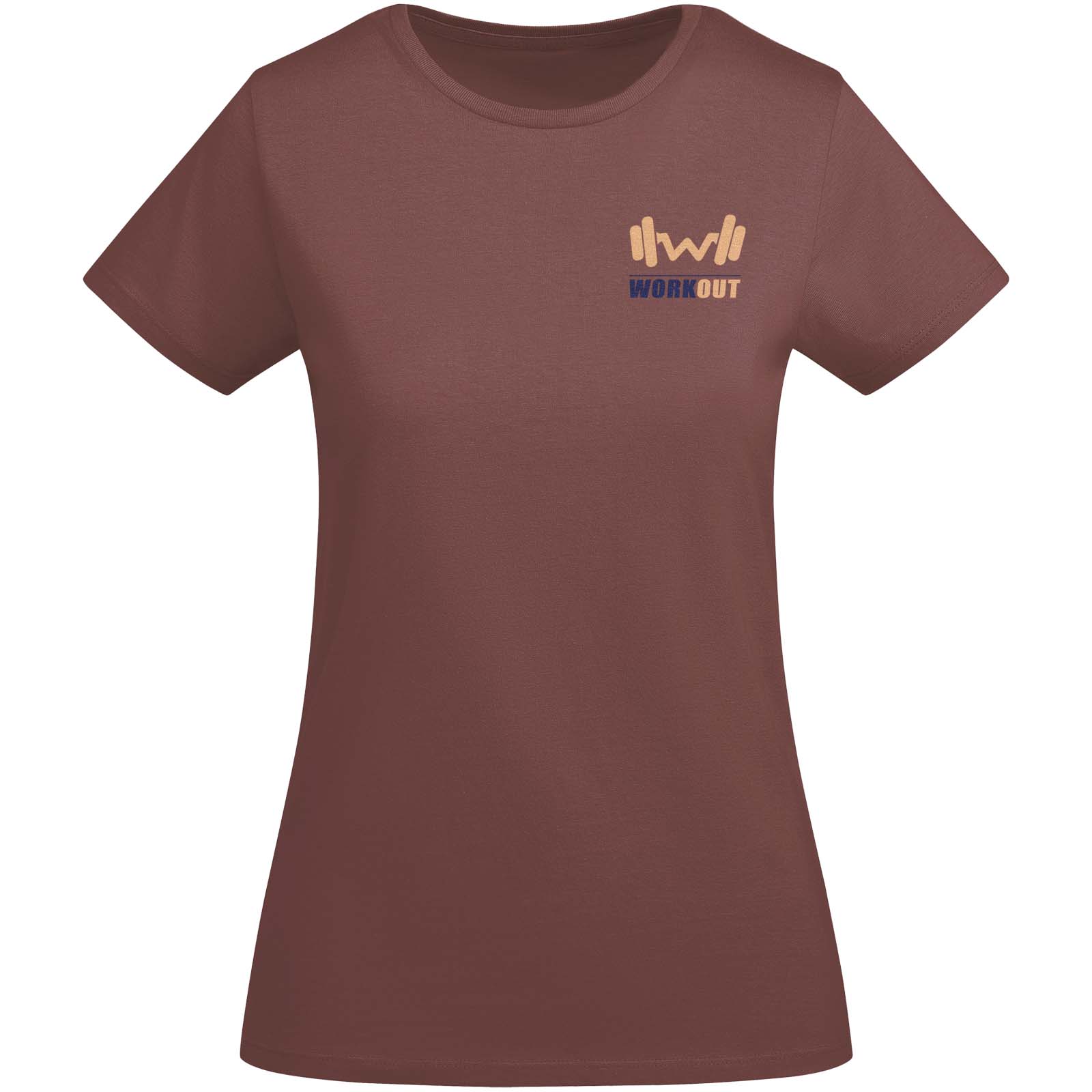 Tailliertes kurzärmeliges T-Shirt aus Bio-Baumwolle für Damen. Rundhalsausschnitt mit 1×1 Rippstrick. Verstärkte und verdeckte Nähte am Kragen. Herausnehmbares Etikett.