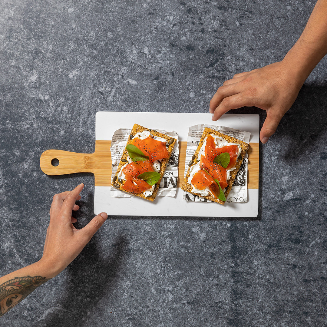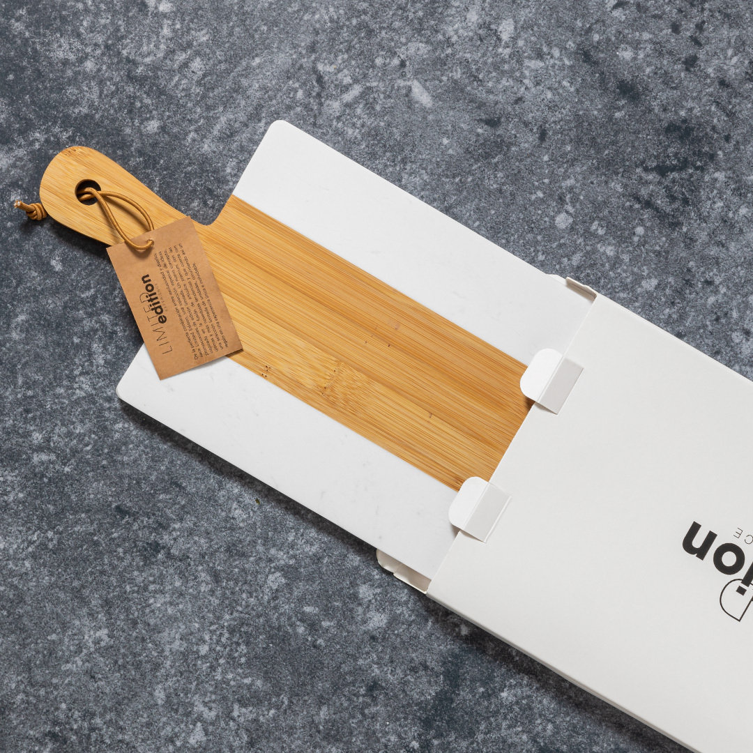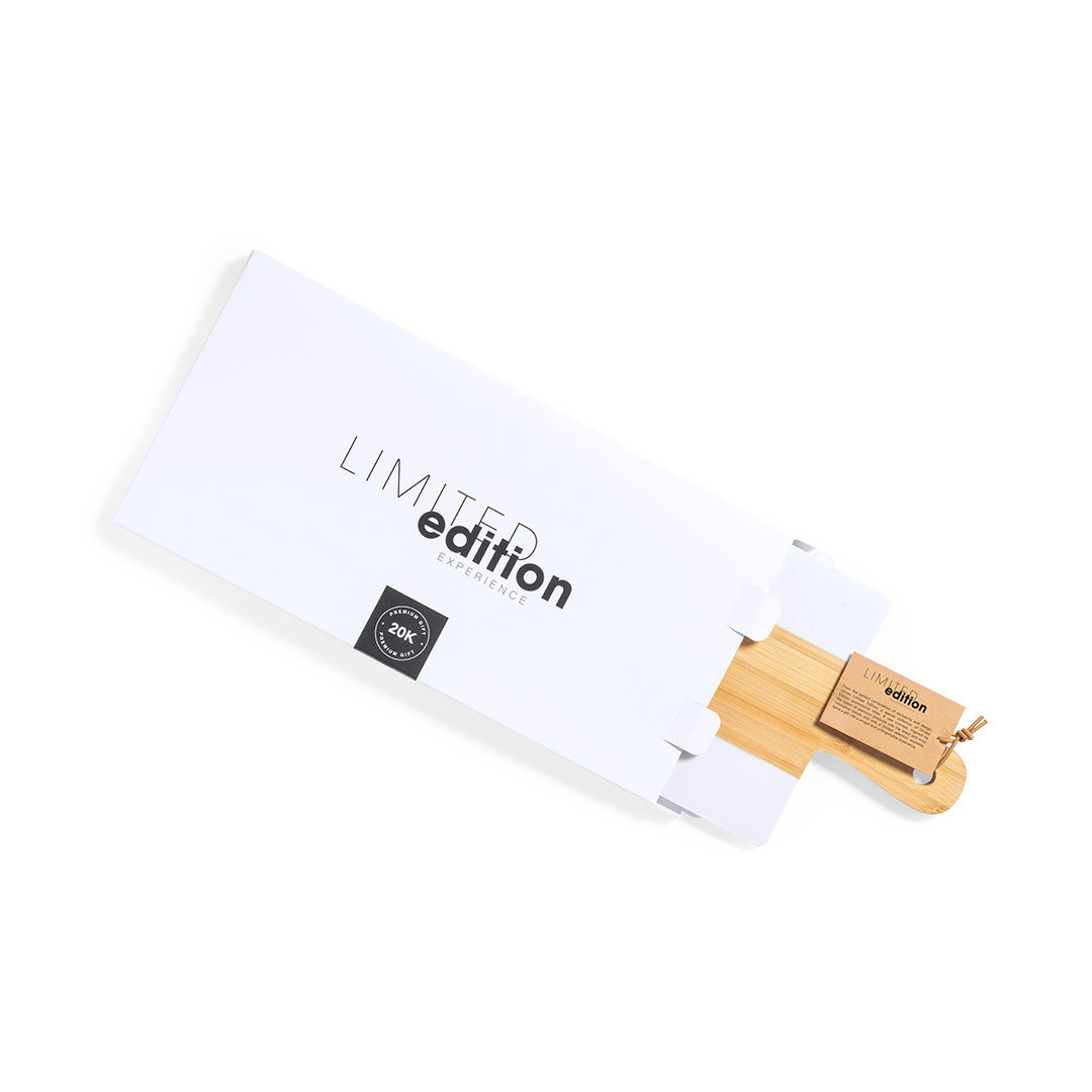 Schneide- und Präsentationsbrett Limited Edition Ein neuer Stil, der Moderne und Tradition verbindet. Hergestellt aus natürlichen Materialien wie Bambus und Marmorextrakt. Glatte und haltbare polierte Oberfläche und Griff für einfache Handhabung. Aus der perfekten Kombination von Exklusivität und Design ist Limited Edition entstanden, eine besondere Kollektion von Werbeideen in limitierter Auflage. Ein neues Konzept, inspiriert durch die Verschmelzung von Premium-Artikeln mit den neuesten und innovativsten Trends und mit einer begrenzten Auswahl an Einheiten, die ein Geschenk zu einem einzigartigen und unvergesslichen Erlebnis machen. Exklusiver Limited Edition-Präsentationskoffer, Design durch gewerbliche Schutzrechte geschützt. Einschließlich einer Karte mit der Beschreibung von Limited Edition Experience auf recyceltem Karton.