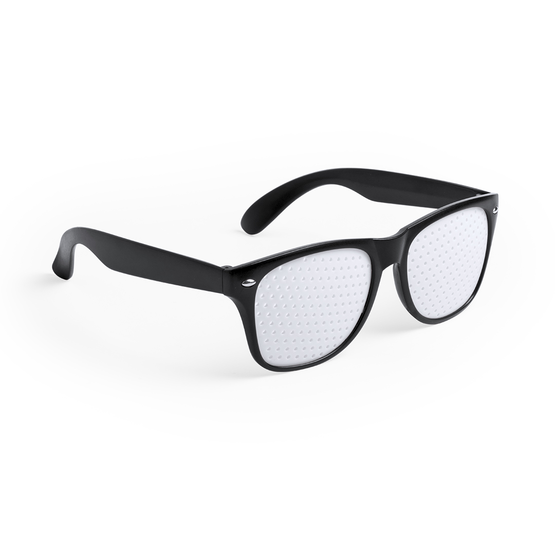 Brille mit originellem Design - speziell entworfen für den Vollfarb-Digitaldruck. Mit Rahmen in fröhlichen Farben und perforierten Gläsern.