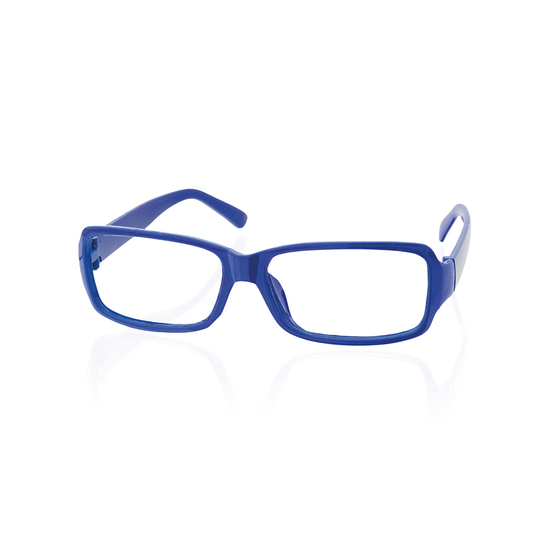Origineller Brillenrahmen ohne Gläser in verschiedenen kräftigen Farben. Präsentiert in einer gepolsterten Polyesterhülle mit Kordelzug.