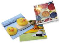 Das Standardformat liegt bei ca. 15 × 18 cm – kompakt und effizient. Für besondere Anlässe oder als Set-Ergänzung bieten sich auch quadratische Formate oder Mini-Varianten an.