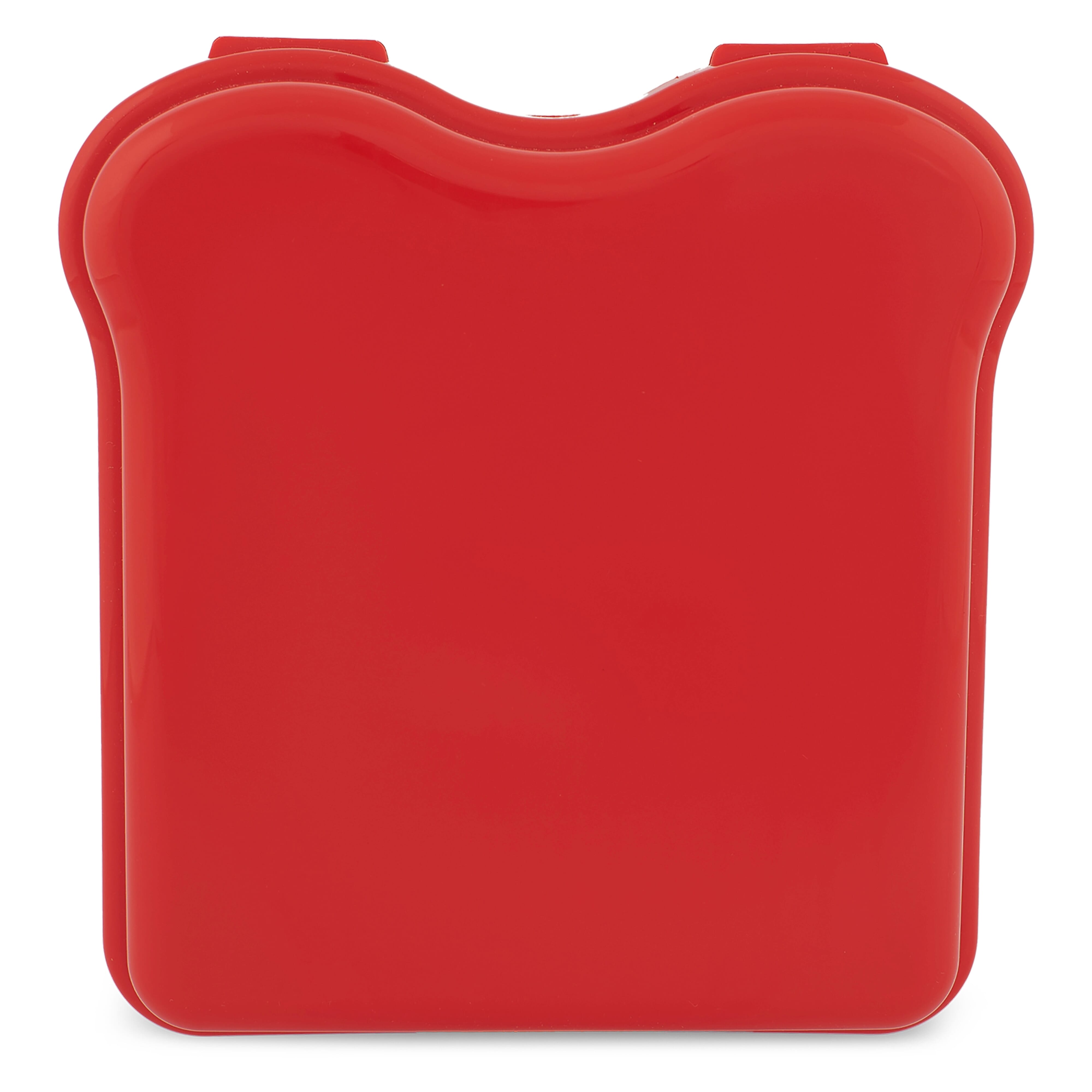 Brotdose in Form eines Sandwiches. Die Brotdose ist aus einem Teil gefertigt. Mit einem Clip auf der Vorderseite zum Verschließen der Box. Hergestellt in Deutschland.