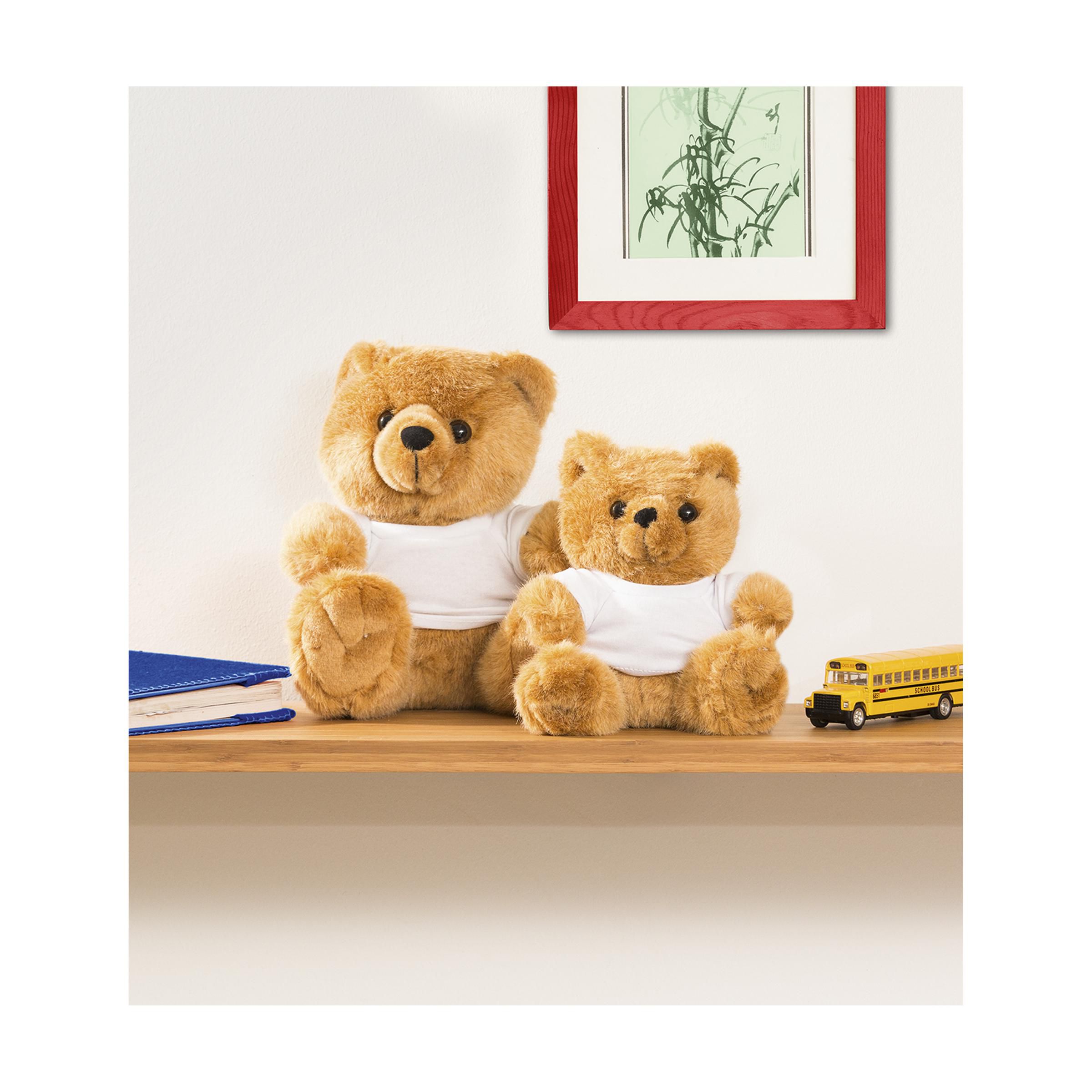 Plüschbär mit weißem T-Shirt. Ohne Druck werden Bären und T-Shirts lose geliefert.