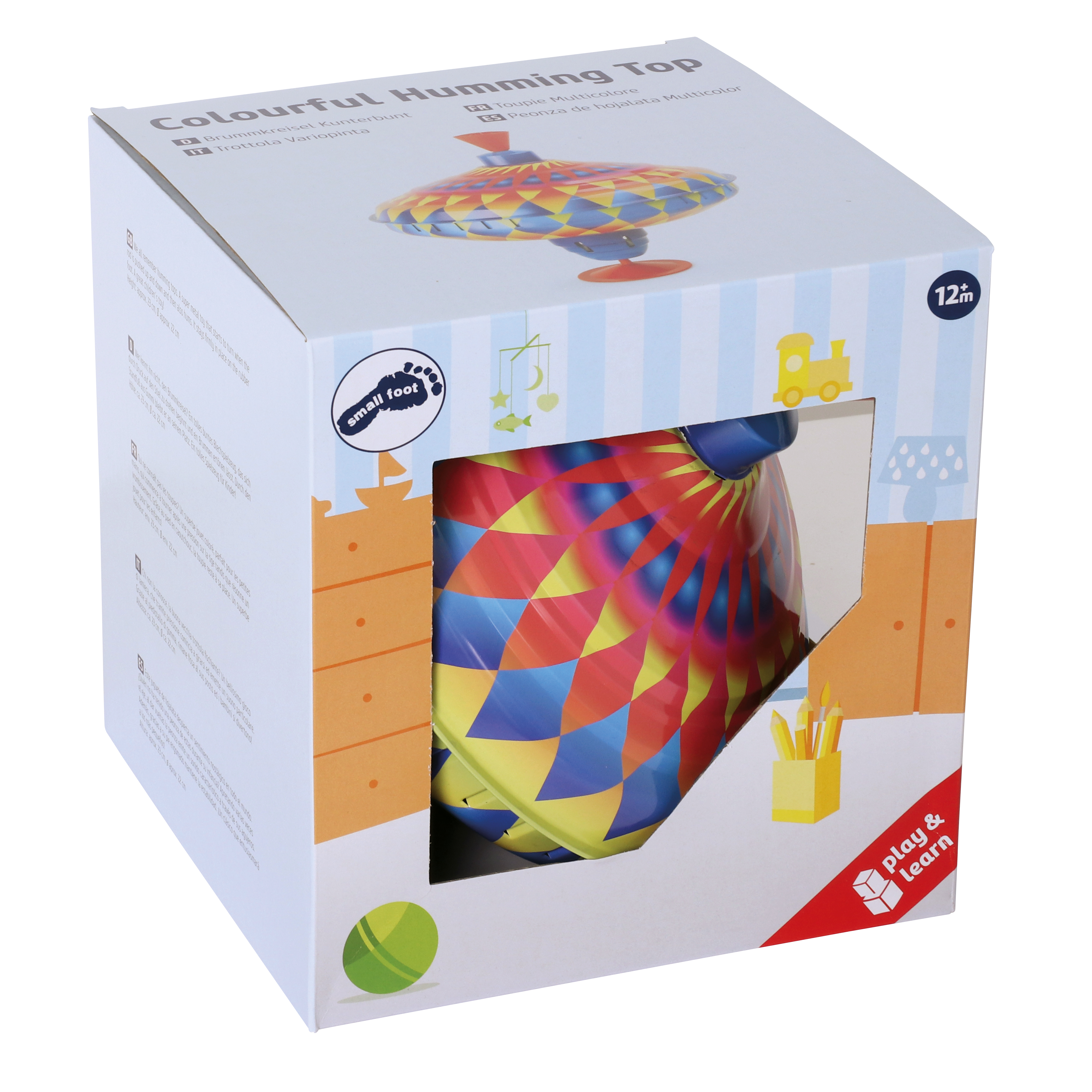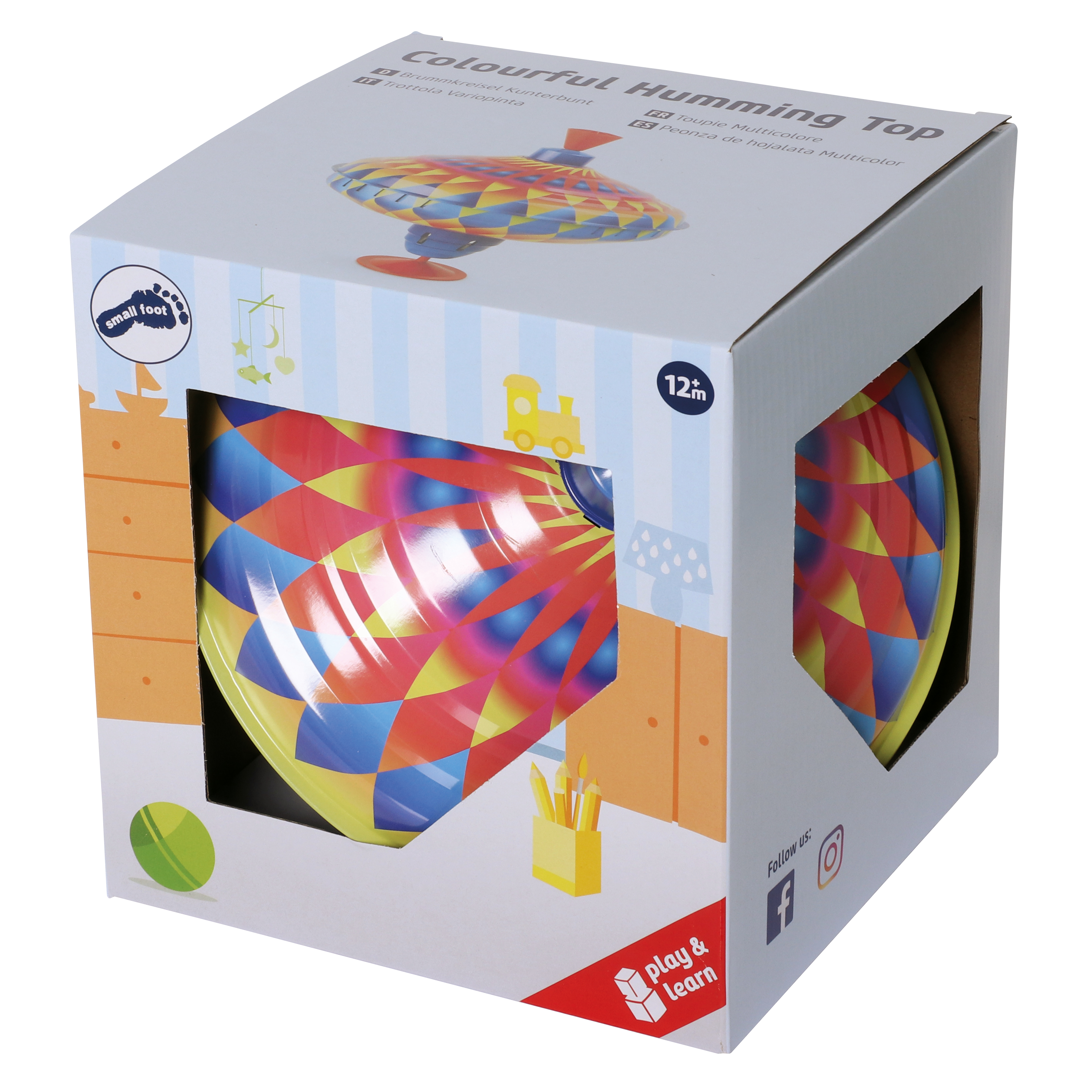 Wer kennt ihn nicht, den Brummkreisel? Ein tolles buntes Blechspielzeug, das sich durch Druck auf den Stiel zu drehen beginnt und ein Brummen ertönen lässt. Durch den Standfuß aus Gummi bleibt er an seinem Platz. Ein tolles Spielzeug für Kinder!Ein Kreisel, der schöne Muster produziert und bei Groß und Klein für Faszination sorgt.