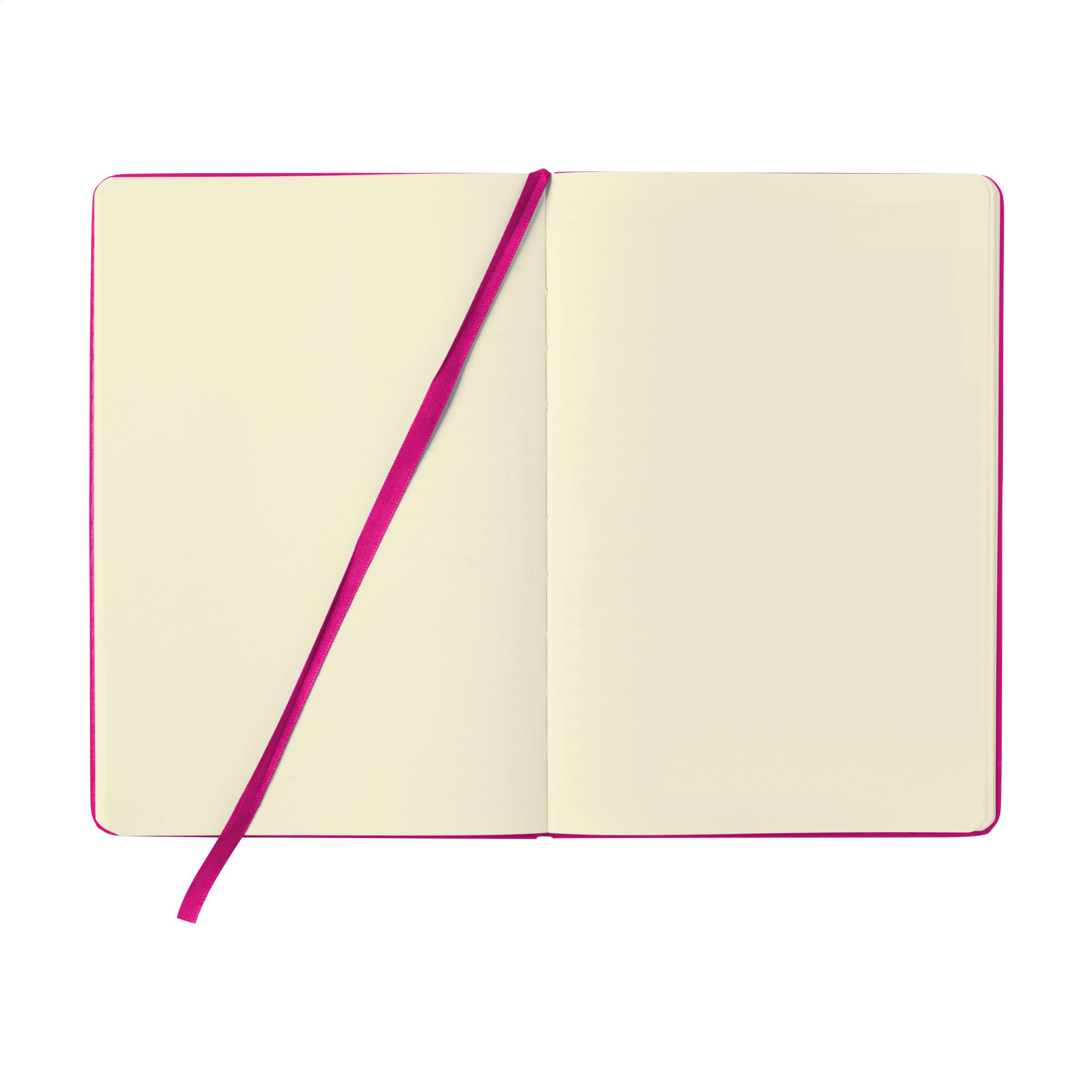Praktisches Notizbuch im A5-Format. Mit festem PU-Überzug, ca. 80 Blankoblatt/160 Blankoseiten cremefarbenem, unliniertem FSC Mix zertifiziertes Papier (70 g / m²), elastischem Verschluss und Leseband.